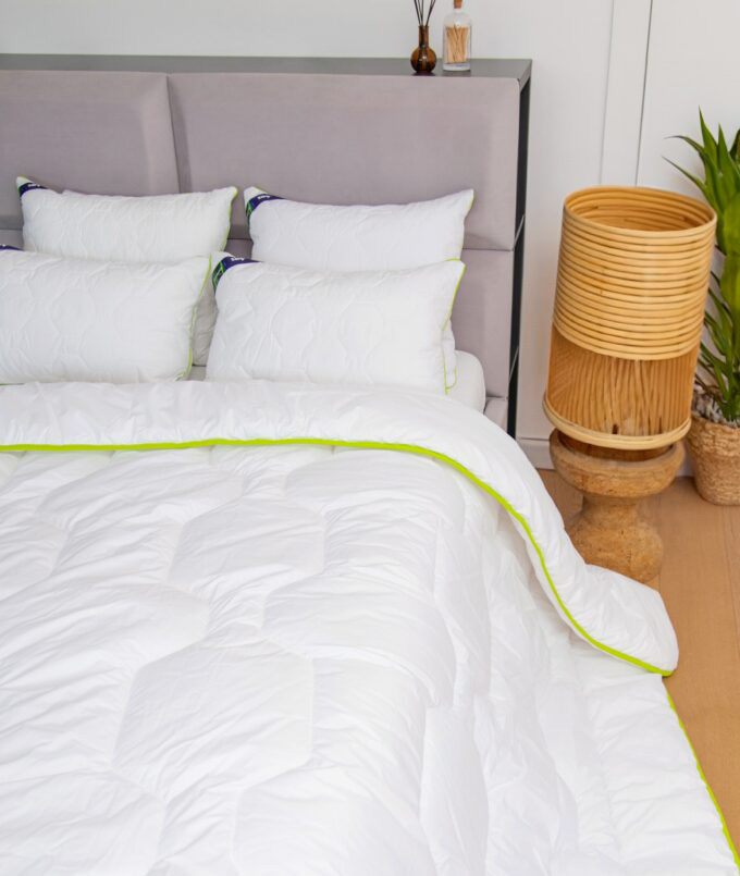 Kołdra wykonana z wysokiej jakości tkaniny bambusowej, która naturalnie wykazuje właściwości antybakteryjne i prozdrowotne. Jest niezwykle miękka i przyjemna w dotyku, a także zapewnia doskonałą wentylację oraz szybkie schnięcie.