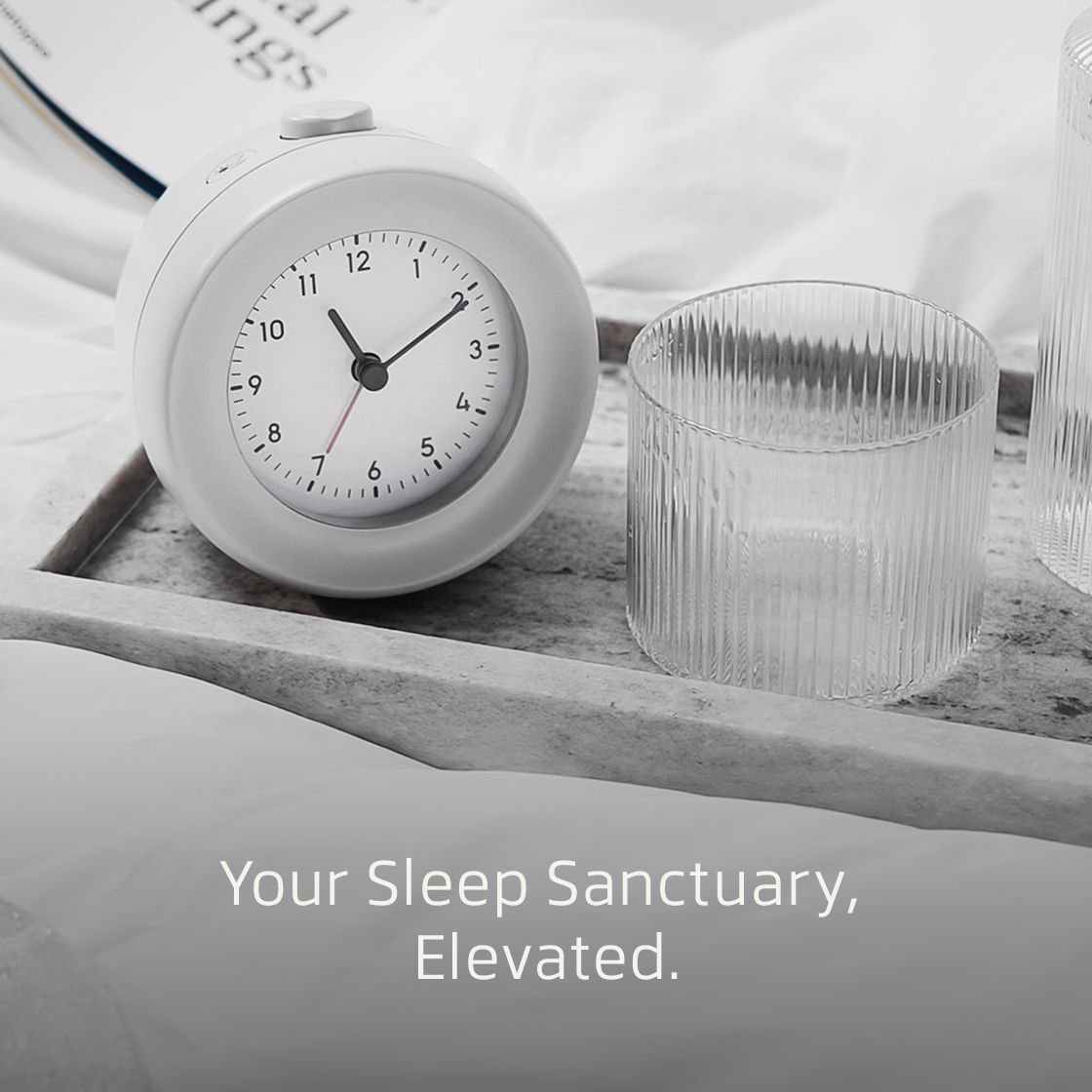 Analogowy budzik z funkcją świetlnego wybudzania w kolorze Pebble Gray