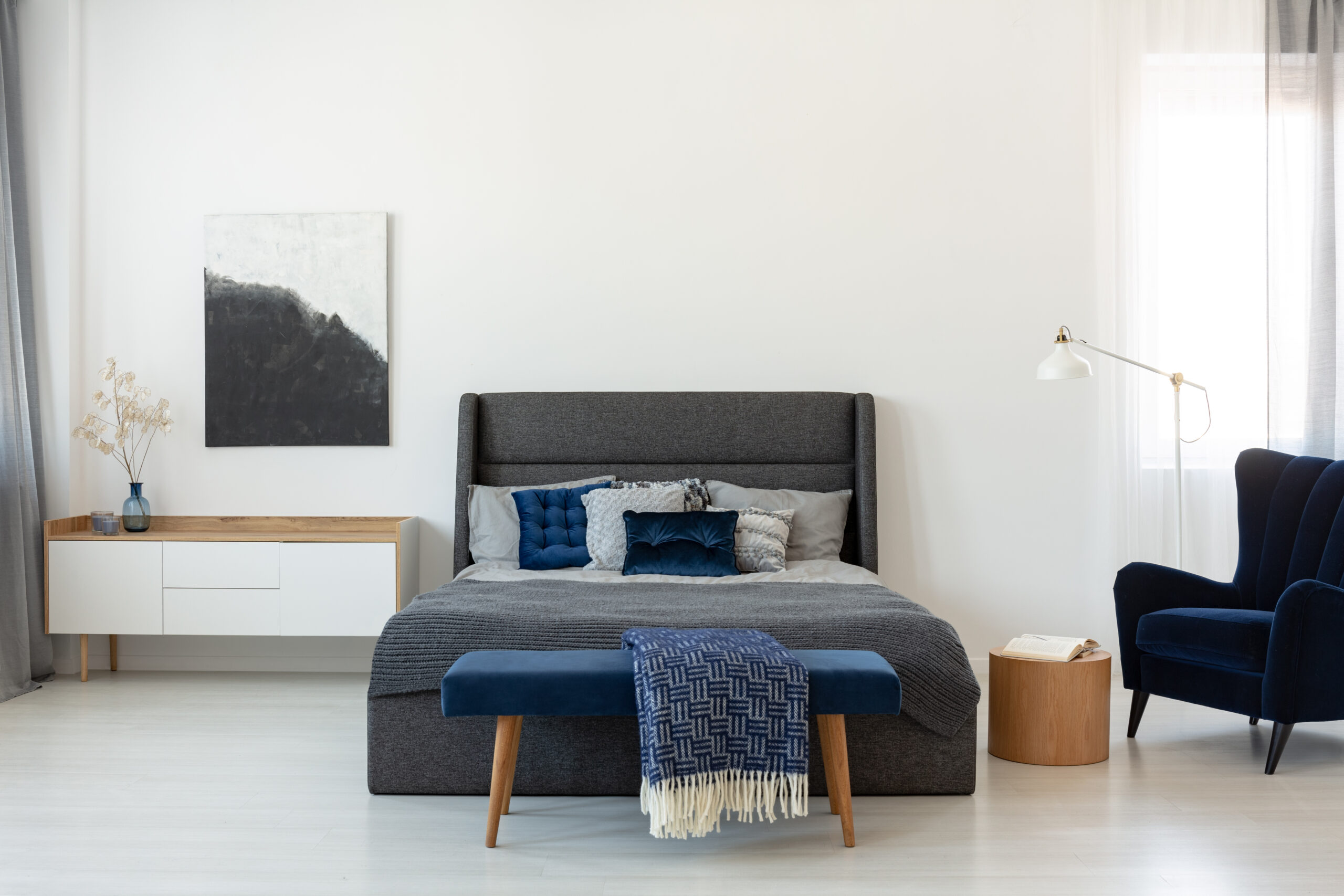 Łóżko tapicerowane to elegancki model z bocznymi oparciami, który łączy komfort użytkowania z przytulnym wyglądem.