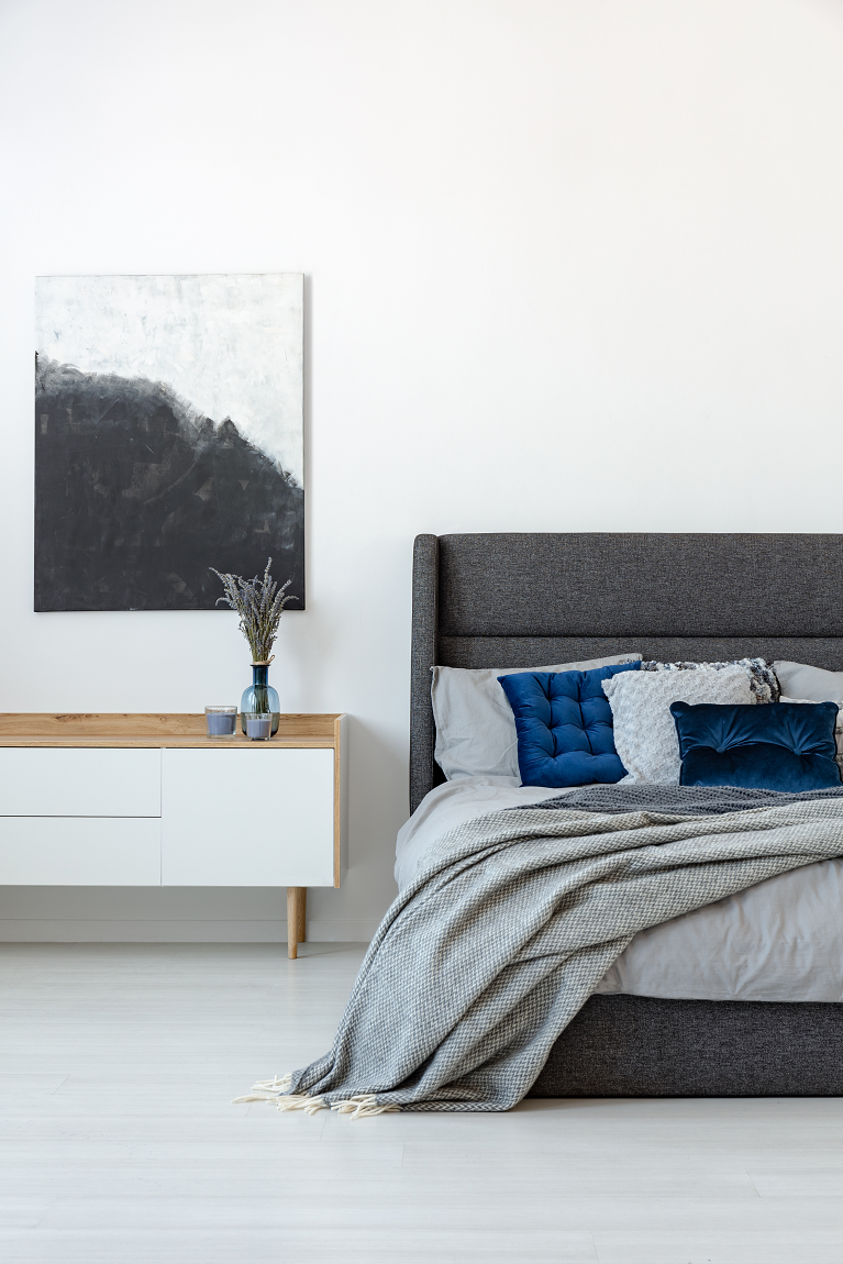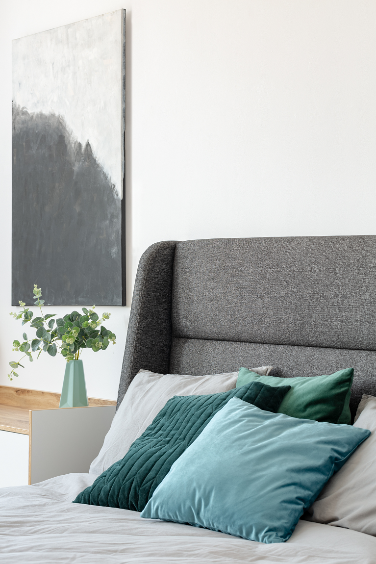 LATINA - lewitujące łóżko z wysokim, tapicerowanym zagłowiem