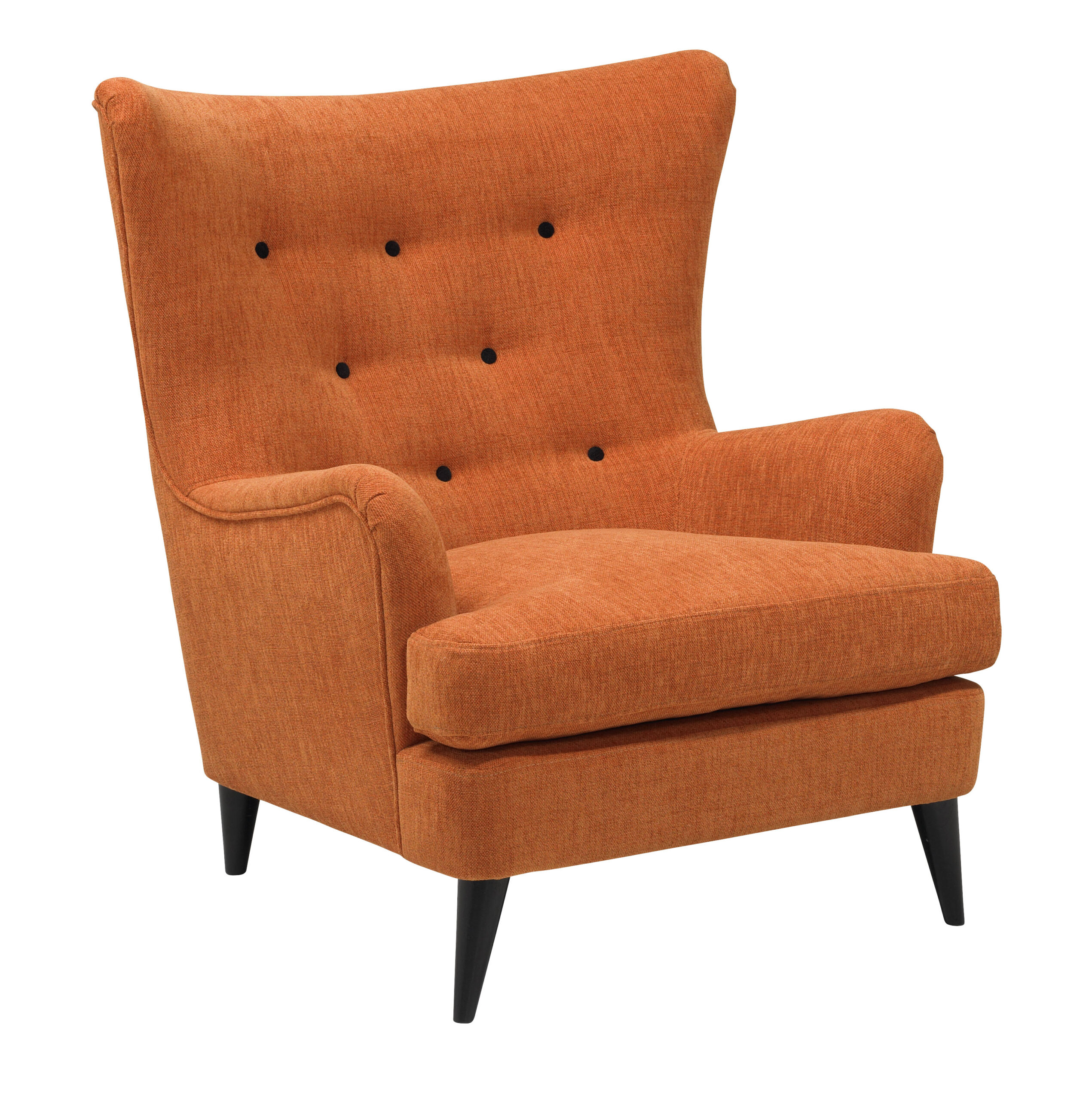 Kolekcja obejmuje fotel, 2-osobową sofę oraz pufę, która świetnie sprawdzi się jako podnóżek, co pozwala na stworzenie spójnej aranżacji. Każdy z elementów wyróżnia się solidnymi, drewnianymi nogami, dostępnymi w 6 wariantach kolorystycznych, co ułatwia dopasowanie mebli do wnętrza. Wysokie podłokietniki umożliwiają wygodne oparcie rąk, a szeroki wybór ponad 400 tkanin sprawia, że każdy znajdzie coś dla siebie, zarówno pod względem koloru, jak i struktury materiału. W cenie mebli można także wybrać guziki oraz kedrę w innym kolorze, co pozwala na jeszcze większą personalizację produktu.