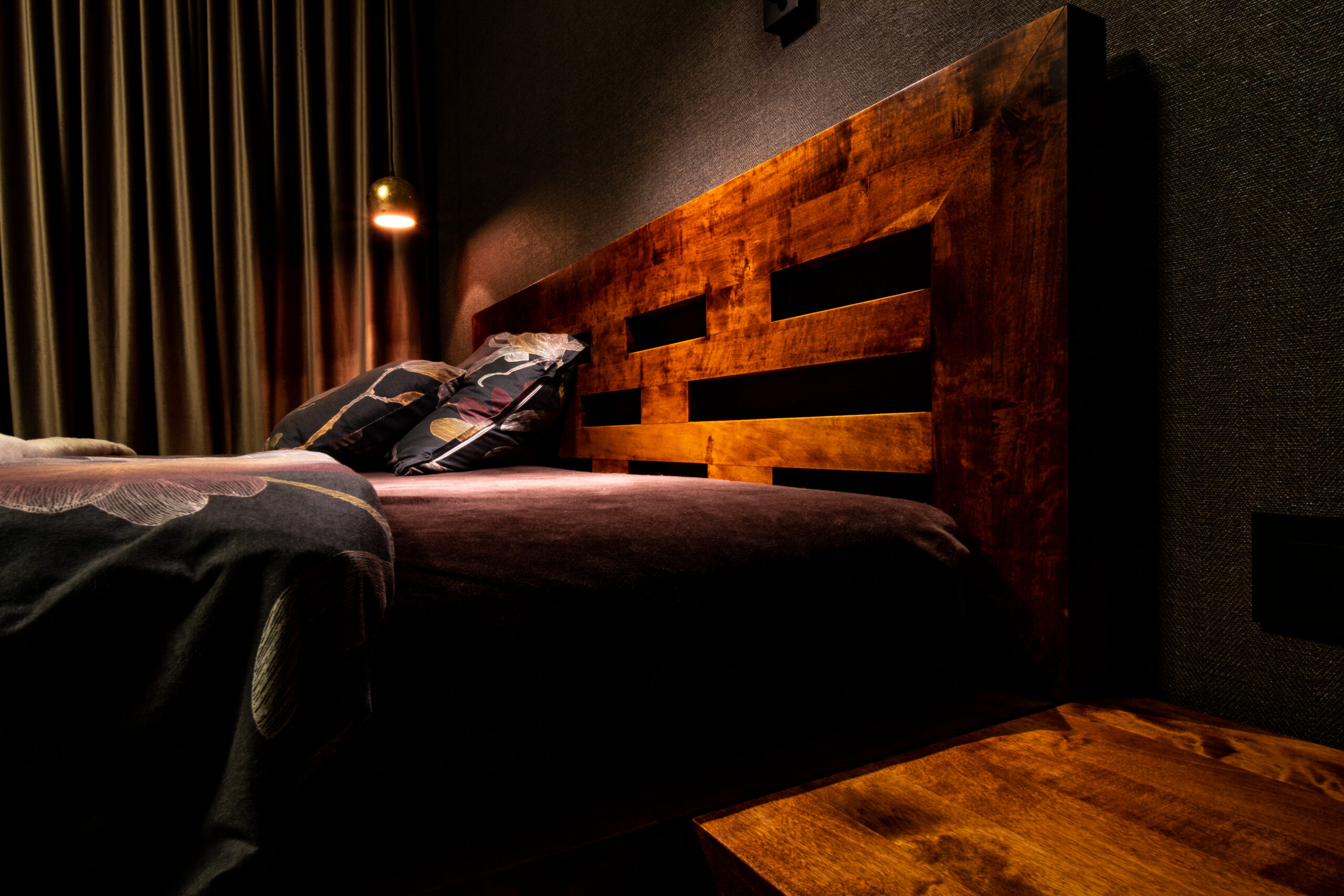 - dekoracyjnym, ażurowym zagłówkiem, który uwypukla rysunek słojów drewna