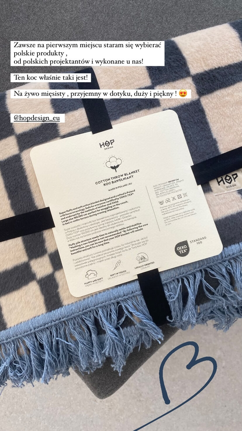 Koc bawełniany SOFT (kratka szaro-beżowa) HopDesign