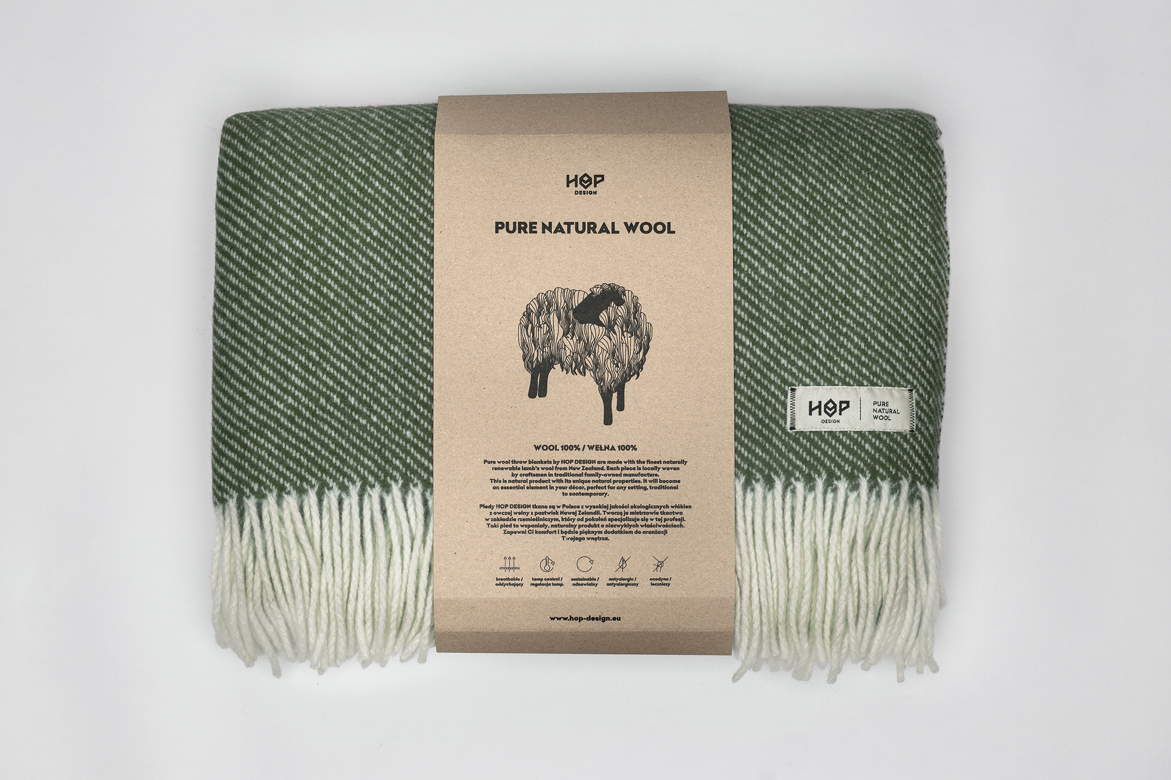 Koc wełniany HopDesign – RURU (butelkowa zieleń)