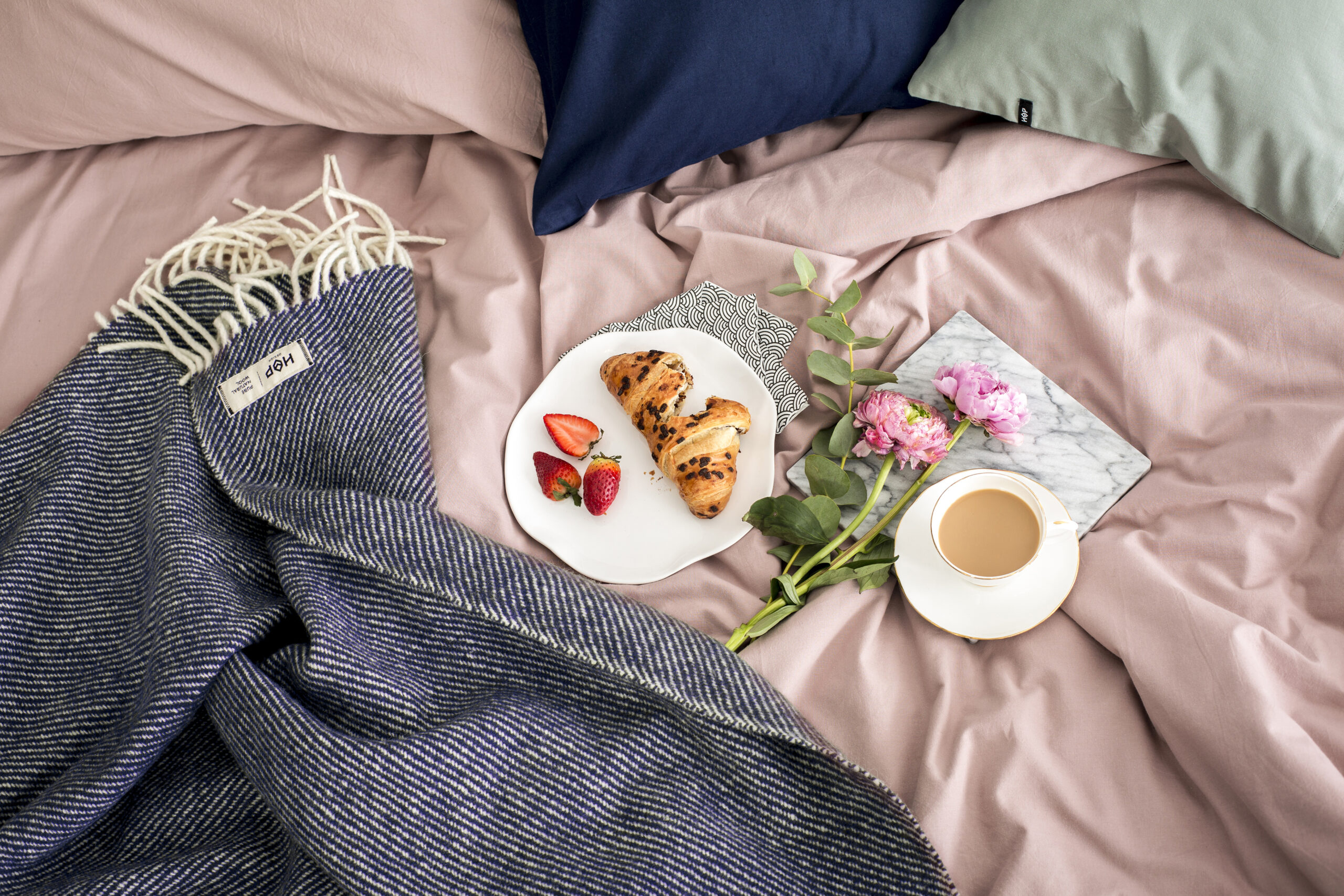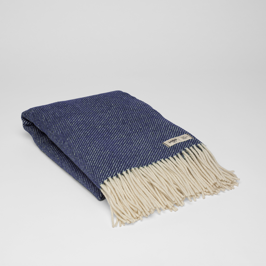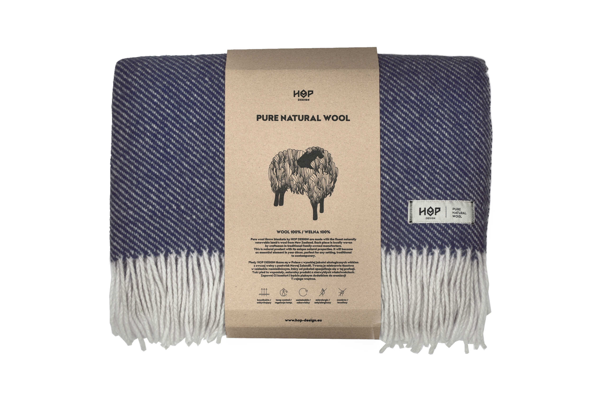 Koc wełniany RURU – naturalna wełna z Nowej Zelandii, elegancki granatowy kolor, ciepły i komfortowy.