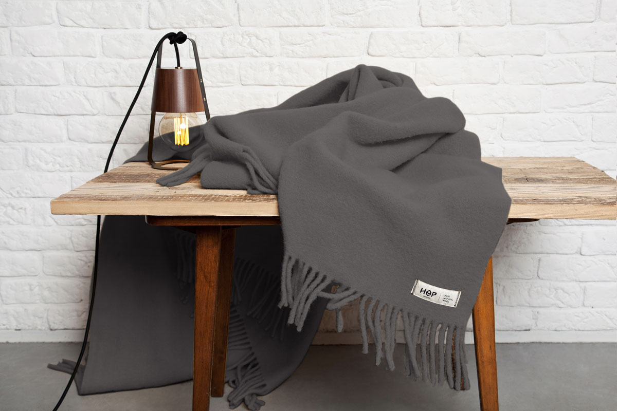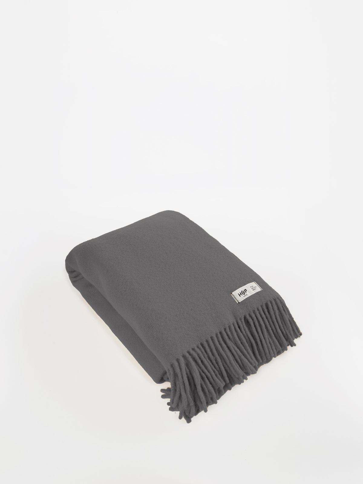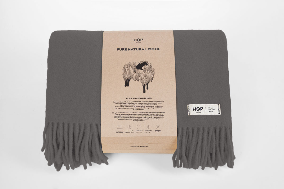 Grafitowy koc YETI z wełny owczej, 145 x 205 cm, elegancki komfort i ciepło.