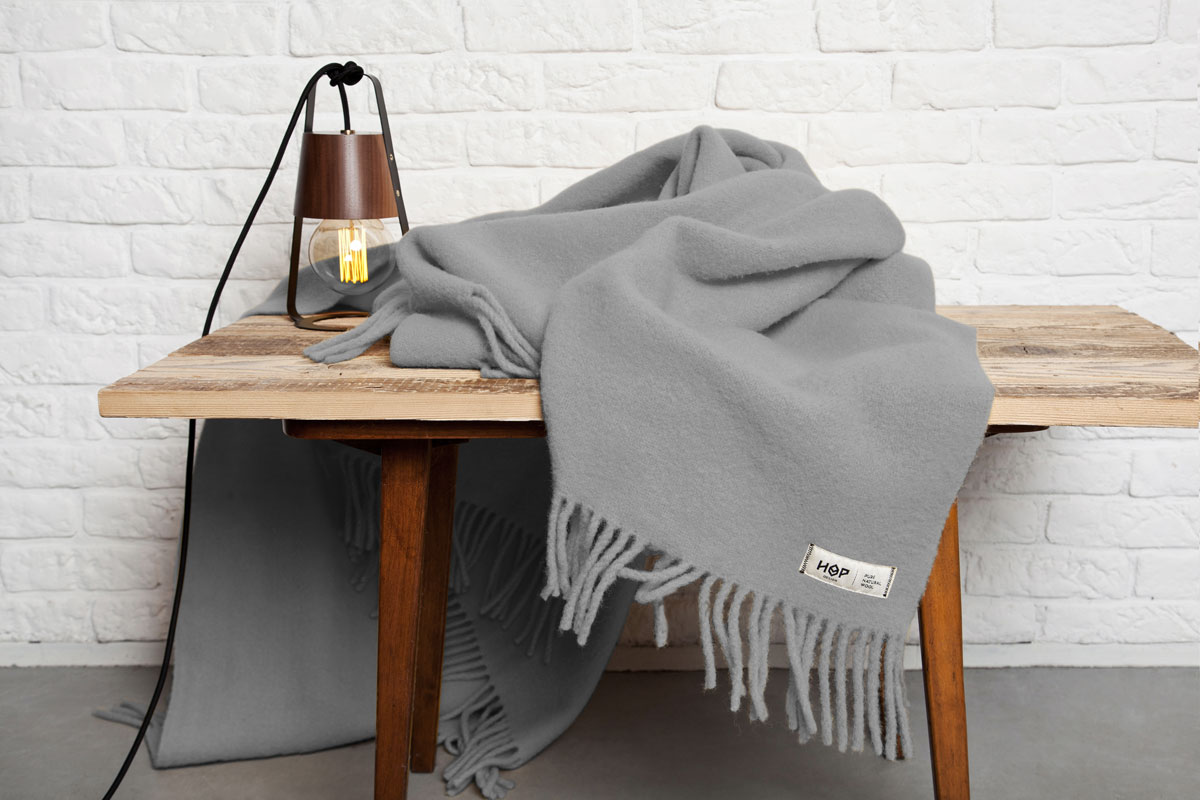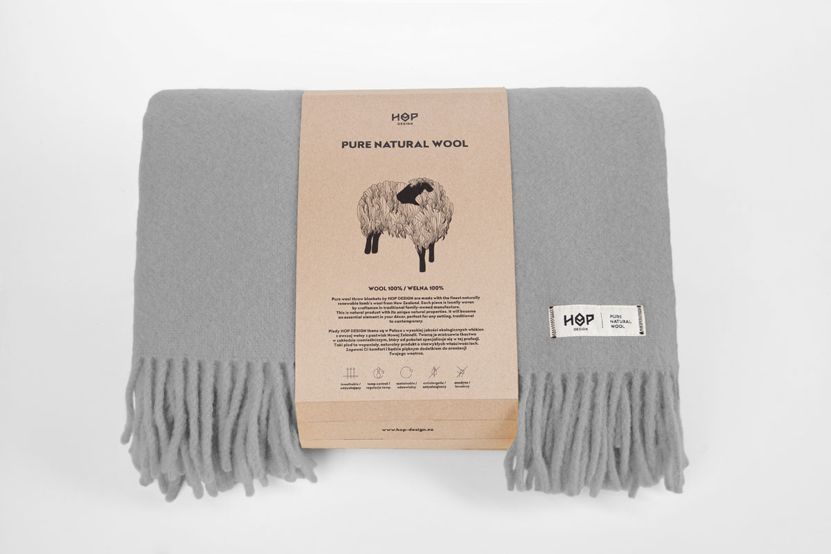 Jasnoszary koc YETI z wełny owczej, 145 x 205 cm, elegancka subtelność i komfort.