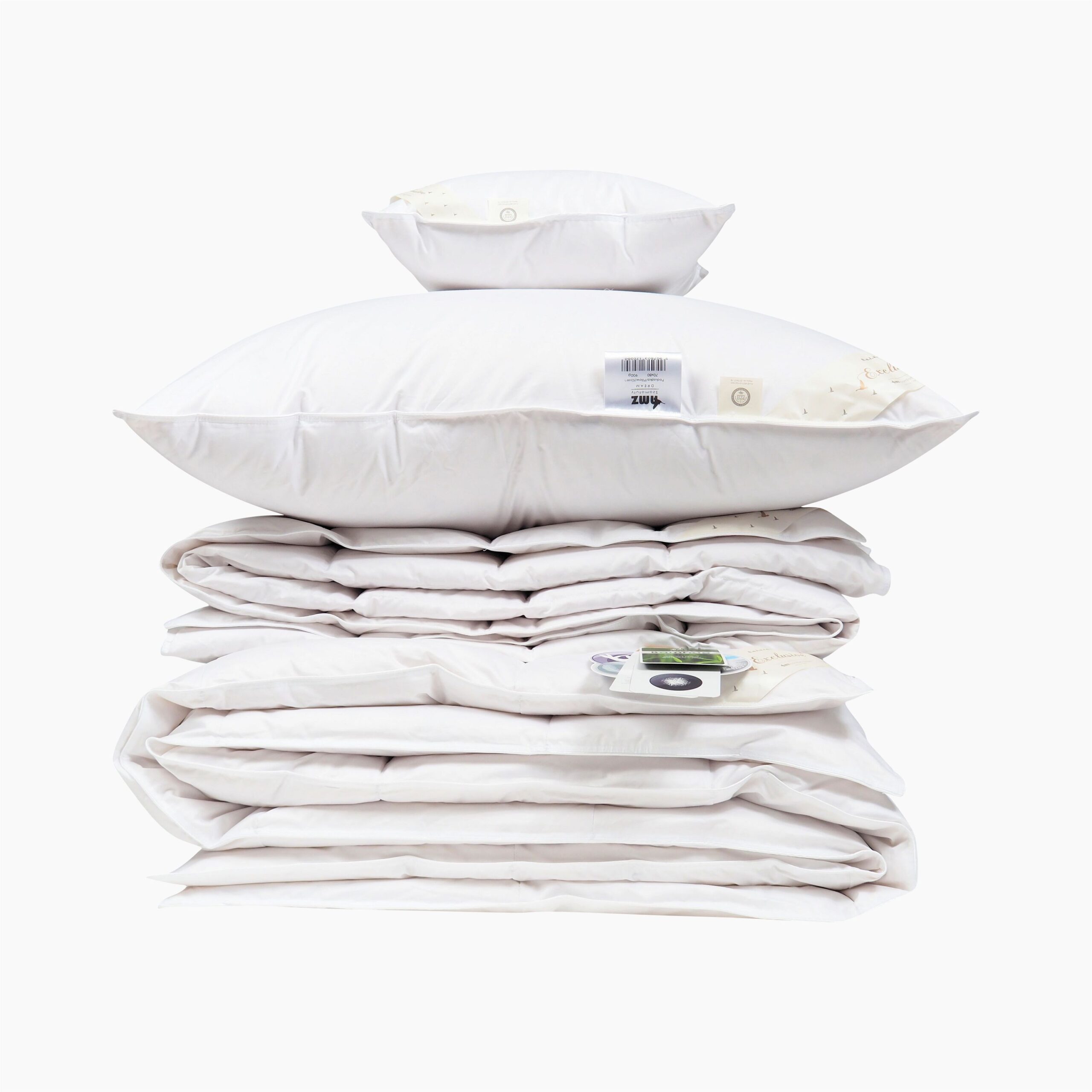 - Wypełnienie: Naturalne – 90% polski gęsi puch o wyporności 700 cuin oraz 10% miękkich, drobnych piórek puchowych.