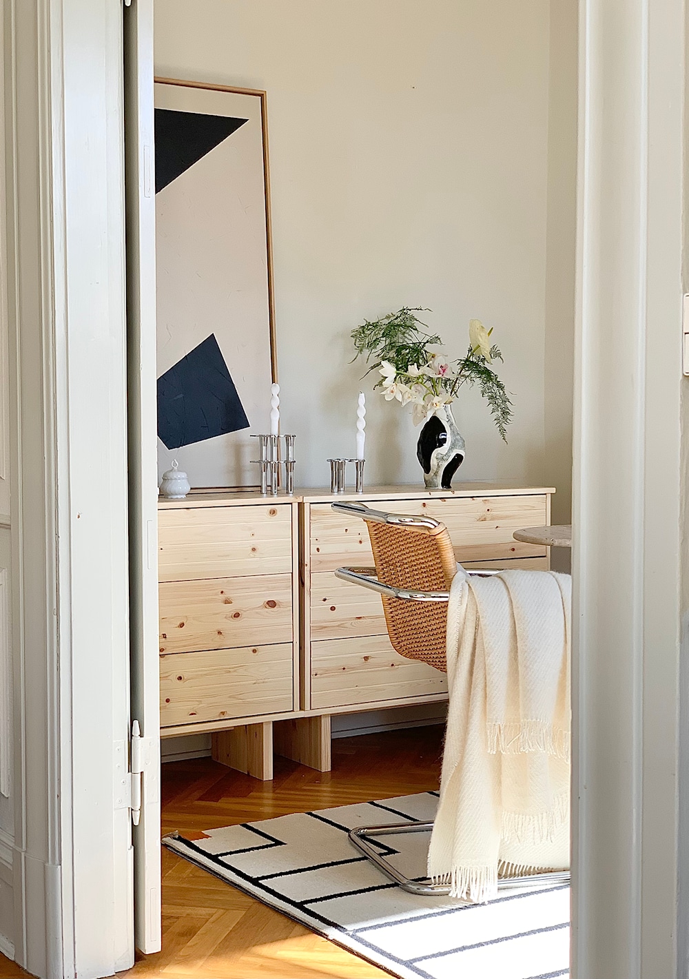 Zajmuje niewiele miejsca, ale pomieści naprawdę dużo. Możesz ustawić ją w dowolnym pomieszczeniu, bo trzy szuflady zapewnią wystarczającą przestrzeń na wszystkie niezbędne rzeczy. Dzięki zintegrowanej funkcji “push to open” komoda ma czysty, prosty wygląd, bez uchwytów czy gałek. Cienkie, wsunięte nóżki sprawiają, że z przodu wygląda, jakby unosiła się nad podłogą, a z boku ma bardziej kompaktowy, pudełkowy kształt. Frezowanie w szufladach dodaje wrażenia poziomych, bezszwowych listew.