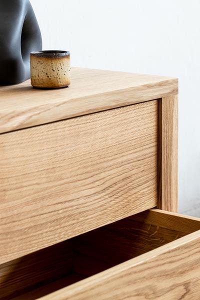 Smukła i delikatna komoda SATO z litego drewna to połączenie praktyczności i naturalnego piękna drewna. Dostępne w drewnie olchowym i dębowym.