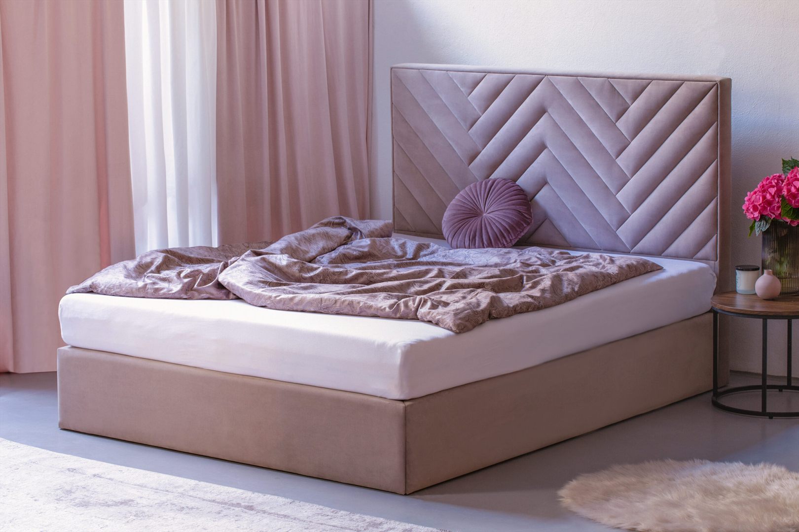 Szerokość łóżka równa jest szerokości materaca – oszczędzamy miejsce, co szczególnie sprawdza się w małych, przytulnych sypialniach.