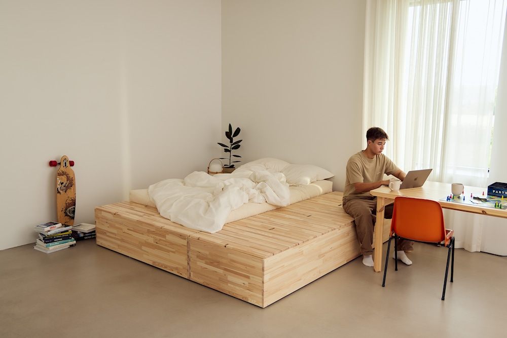Łóżko Basement, zaprojektowane przez C.F. Møller Architects, to eleganckie i praktyczne rozwiązanie, które łączy przestrzeń do spania z funkcjonalnym miejscem do przechowywania.