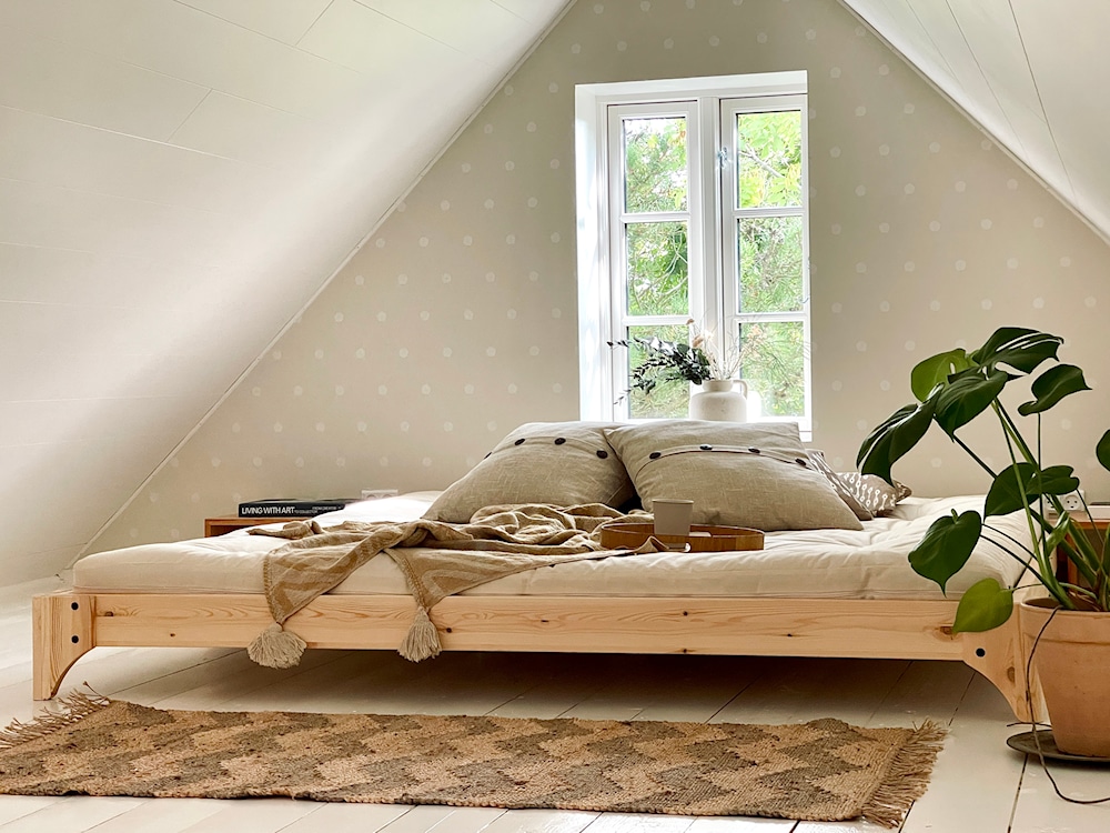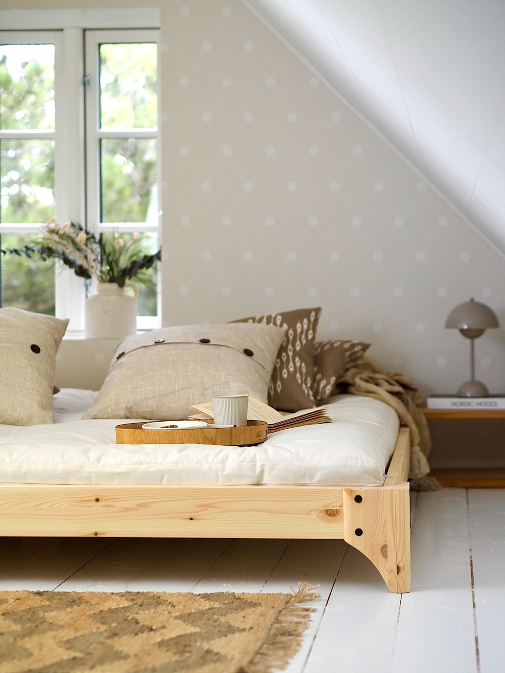 Wybierz maty tatami do łóżka Elan, aby nadać swojej sypialni japoński charakter z materacem futon na wierzchu, lub użyj łóżka Elan z futonem bezpośrednio umieszczonym w ramie, aby uzyskać styl bliższy podłodze. Projekt autorstwa Steffensen & Würtz dla Karup Design. Zestaw nie zawiera materaca ani maty tatami.