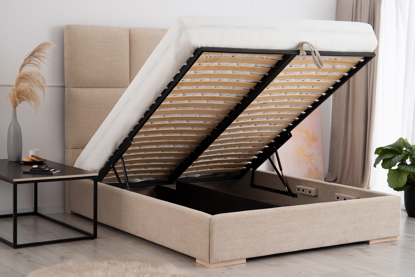 FLOW to model, który łączy estetykę i funkcjonalność – sprawdzi się zarówno jako centralny punkt sypialni, jak i wygodne miejsce codziennego wypoczynku.