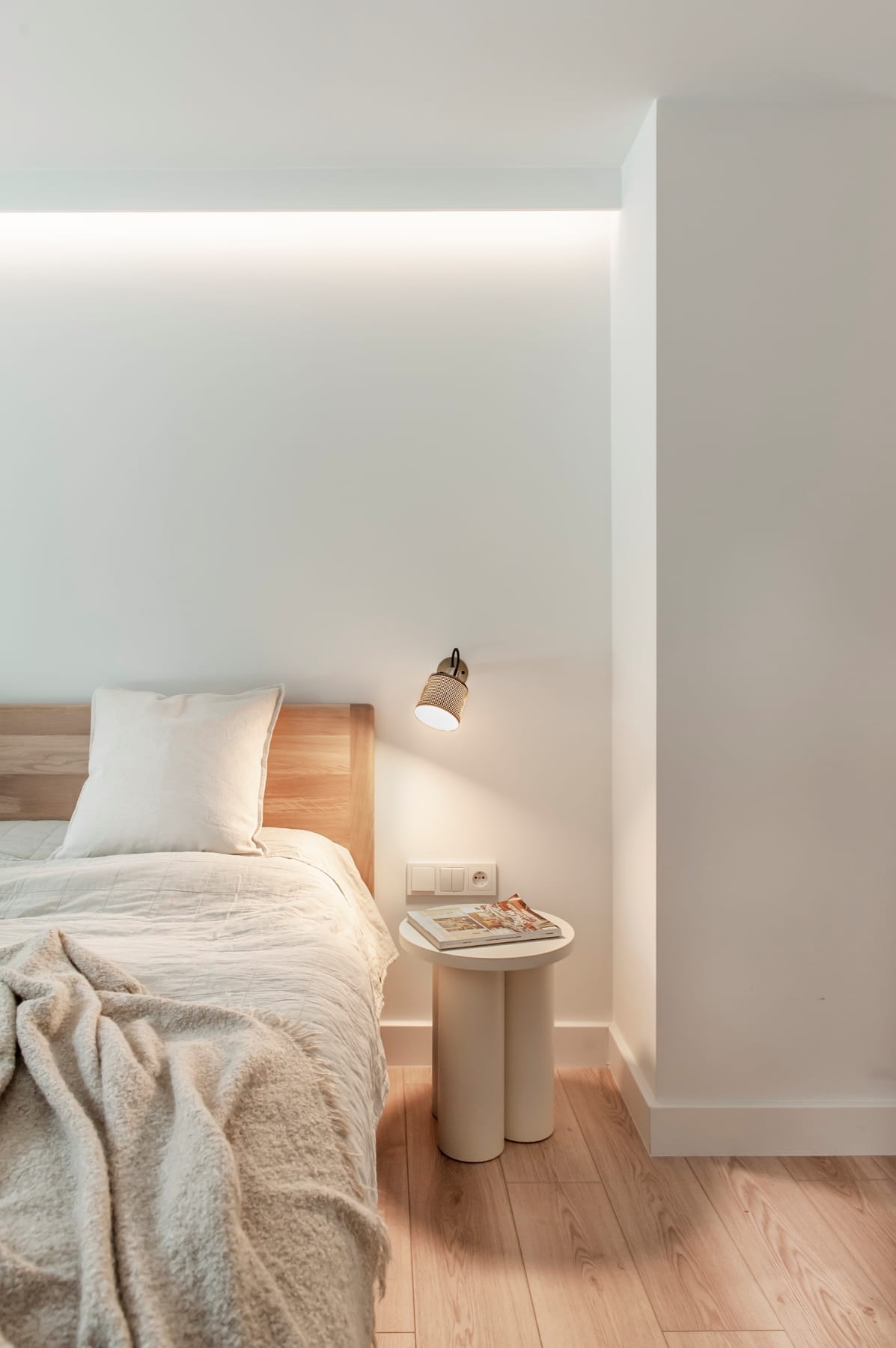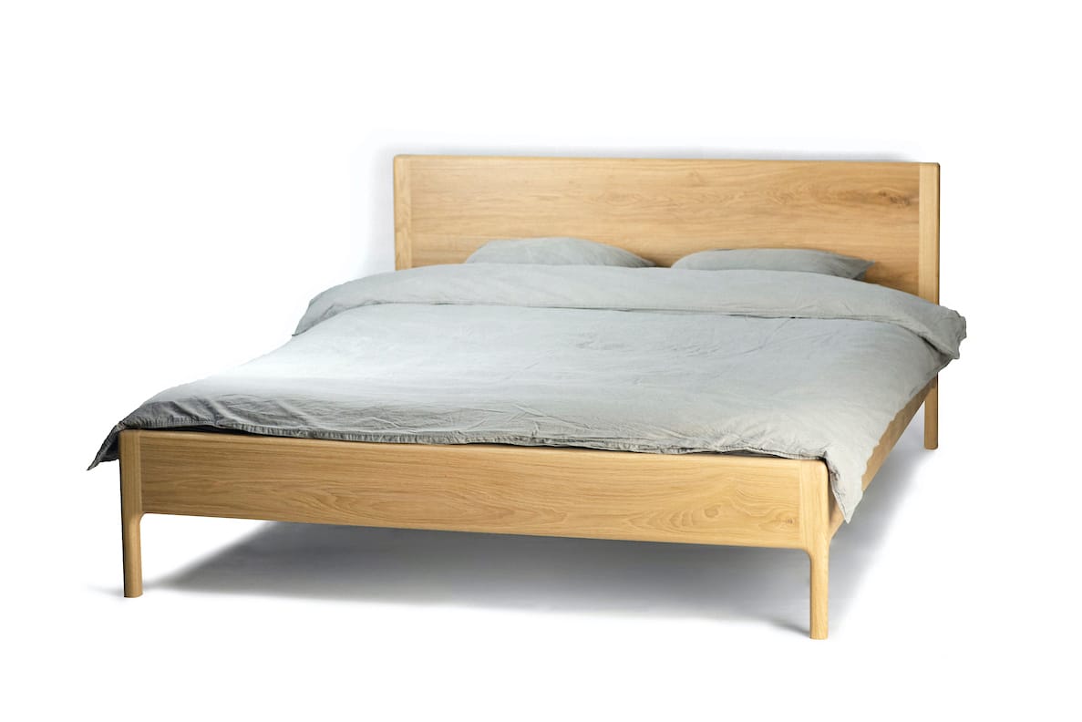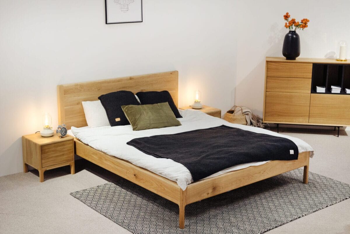 Minimalistyczne łóżko Flux z kolekcji o łagodnych liniach
