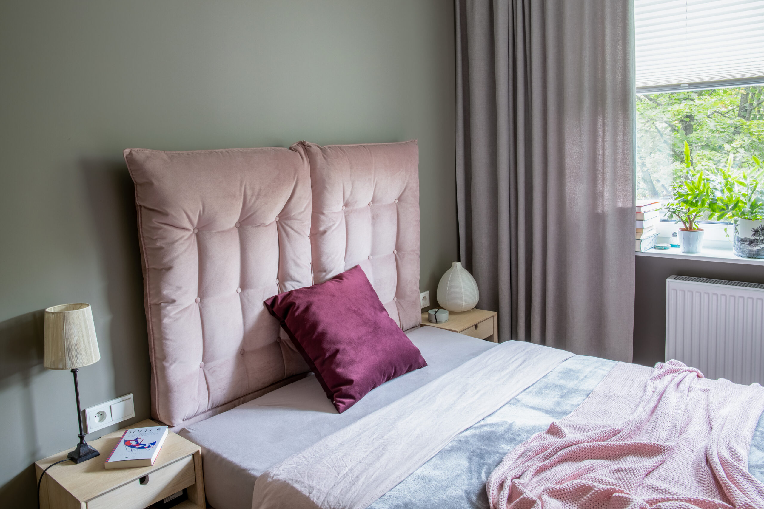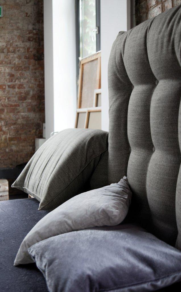 FLEX to łóżko o unikatowych możliwościach! Wezgłowie składa się z dwóch miękkich, pikowanych poduch z możliwością dostosowania go do pozycji siedzącej. Idealne dla osób lubiących w łóżku czytać książkę lub oglądać telewizję.