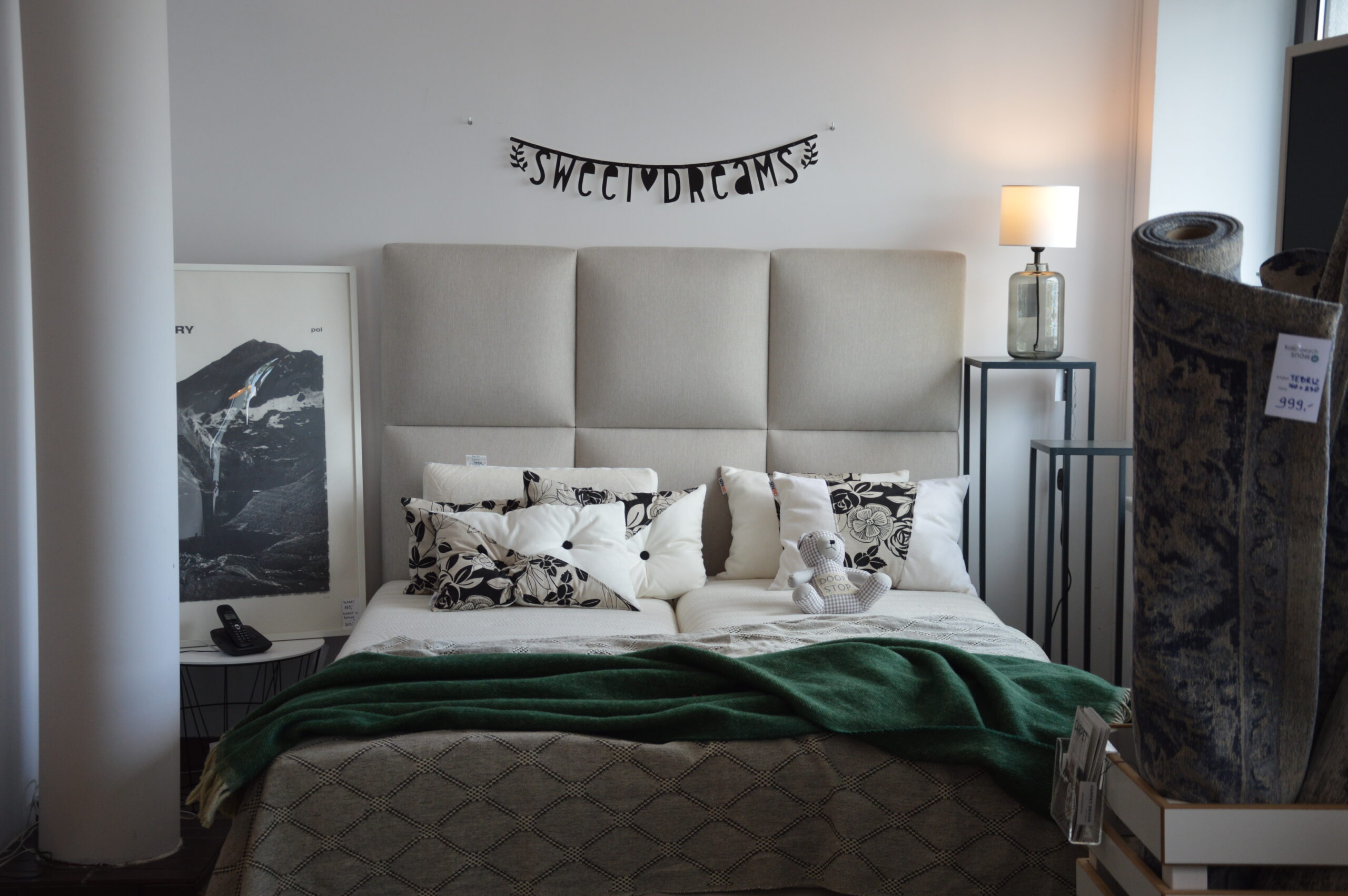 Łóżko FLOW z wysokim zagłówkiem to niewątpliwa ozdoba sypialni. Oparcie sięga aż 150 cm i zbudowane jest z 6 poduch.