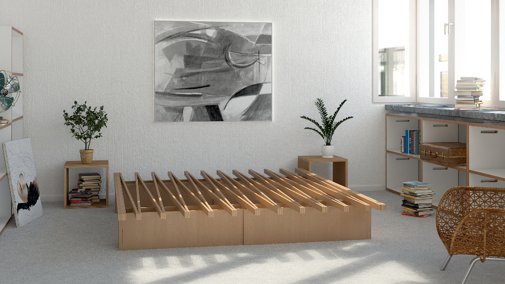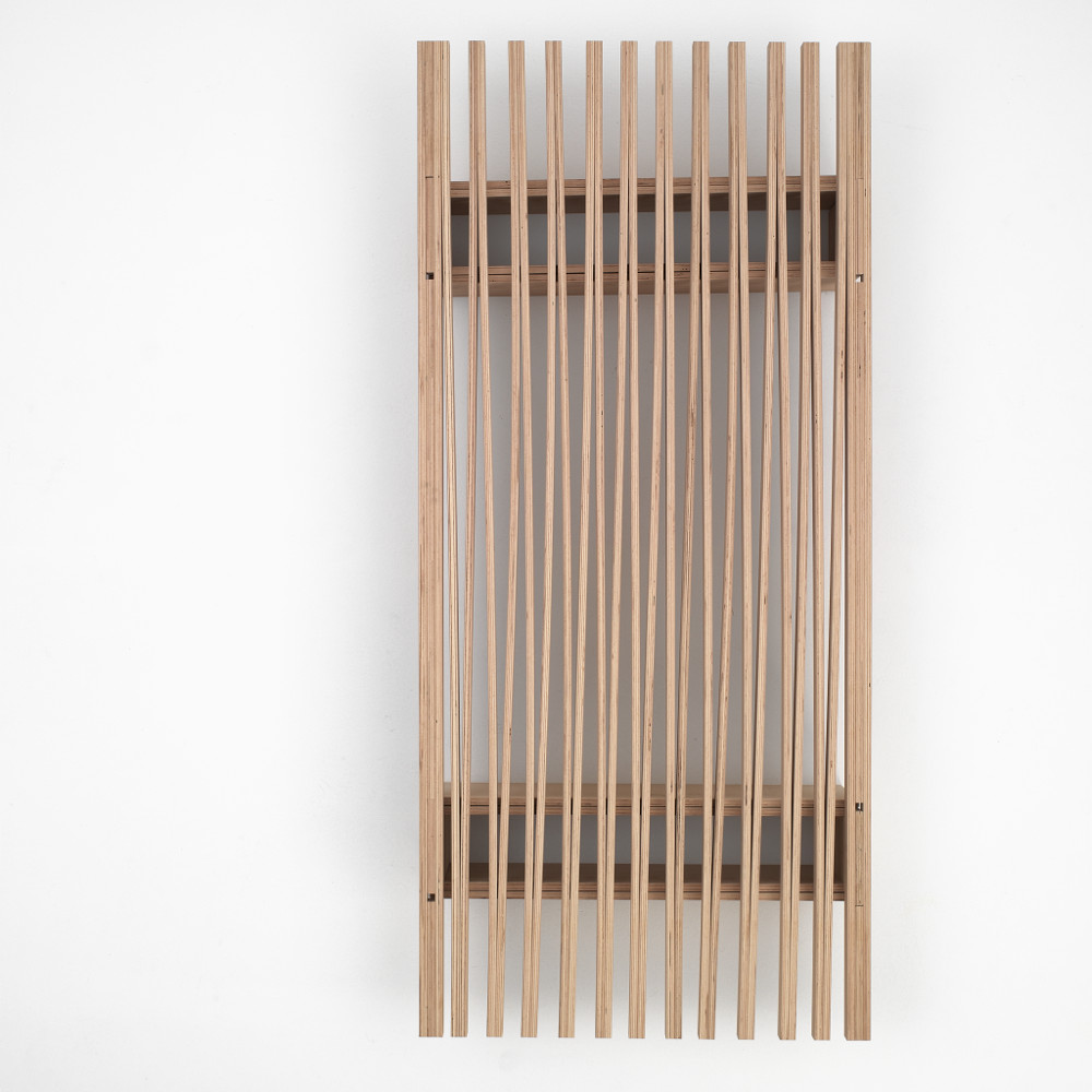 Minimalistyczne łóżko TOJO V ze sklejki bukowej, rozkładane jak harmonijka