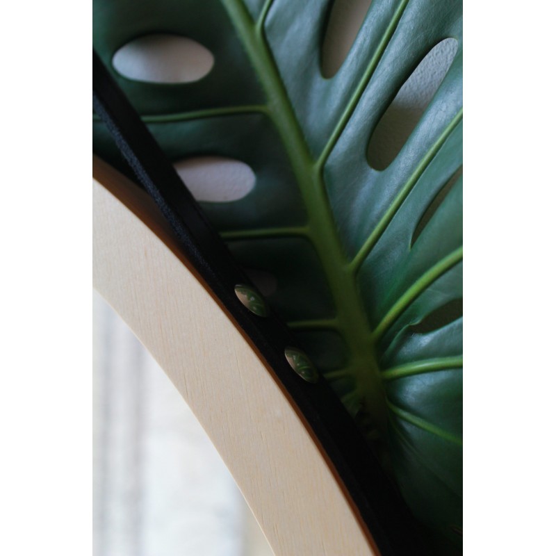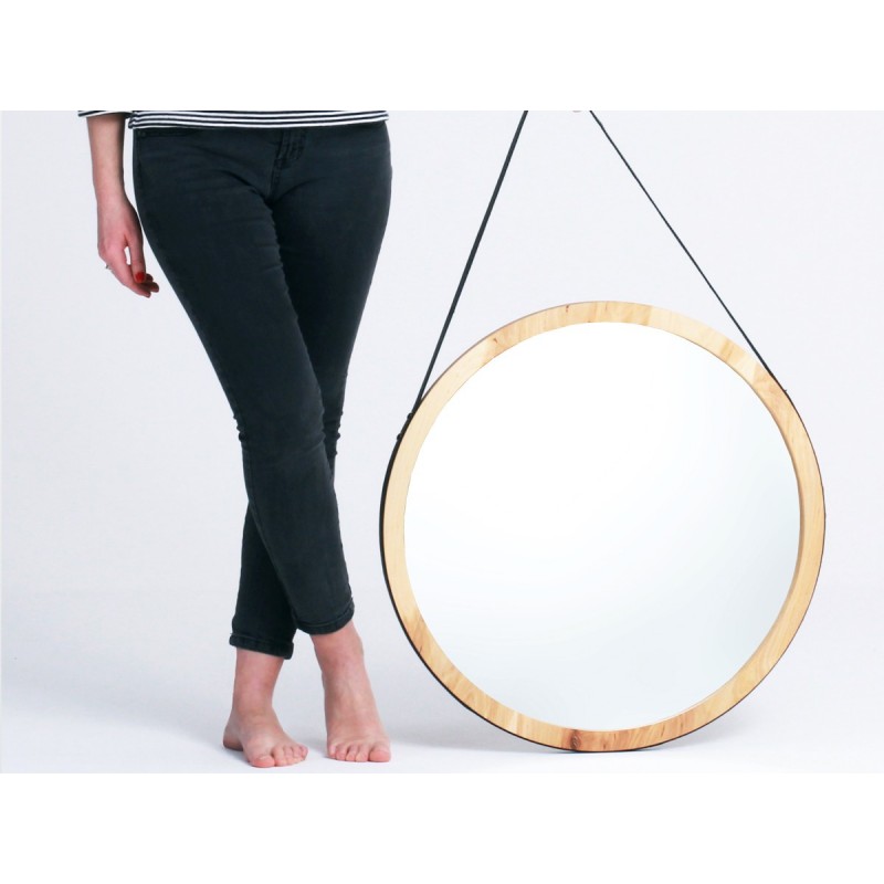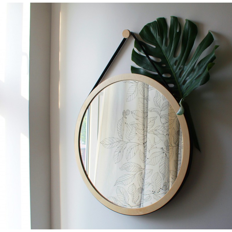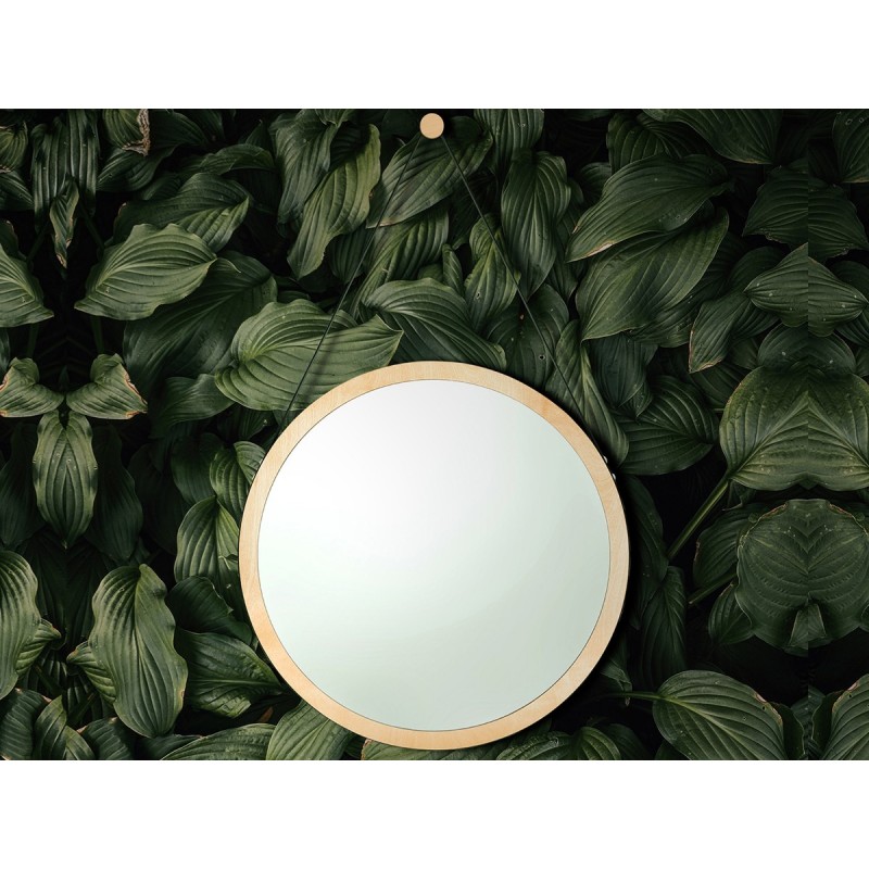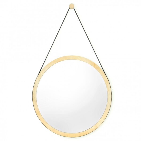 To okrągłe lustro o nowoczesnym, minimalistycznym designie to doskonały wybór dla każdego wnętrza. Wykonane z naturalnej sklejki brzozowej, z precyzyjnie wpuszczoną taflą lustra, tworzy harmonijną, estetyczną całość. Lustro zostało ozdobione czarnym skórzanym paskiem, który nie tylko podkreśla jego elegancję, ale także zapewnia solidność mocowania.