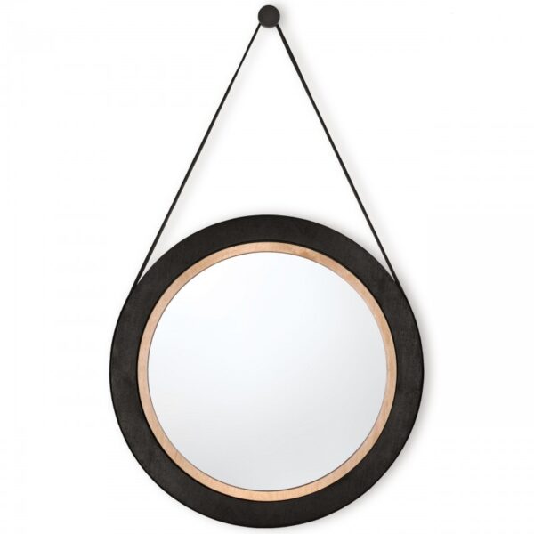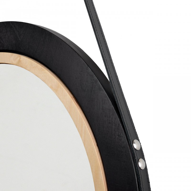 To lustro o minimalistycznym designie to idealna ozdoba do każdego wnętrza. Jego okrągła rama składa się z dwóch elementów – jednej części z naturalnej sklejki brzozowej oraz drugiej, lakierowanej na czarno, co nadaje mu wyjątkowy, nowoczesny charakter. Tafla lustra jest starannie wpuszczona w ramę, co podkreśla prostotę formy.