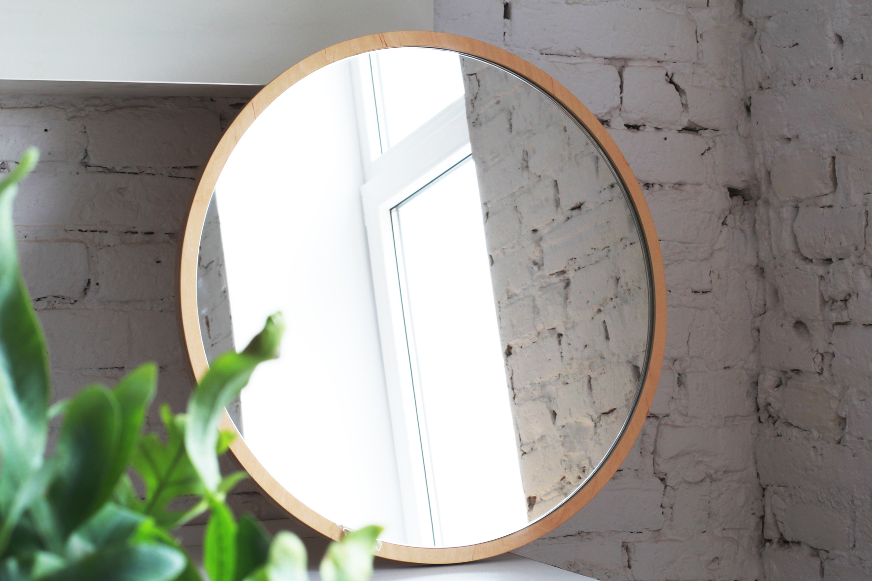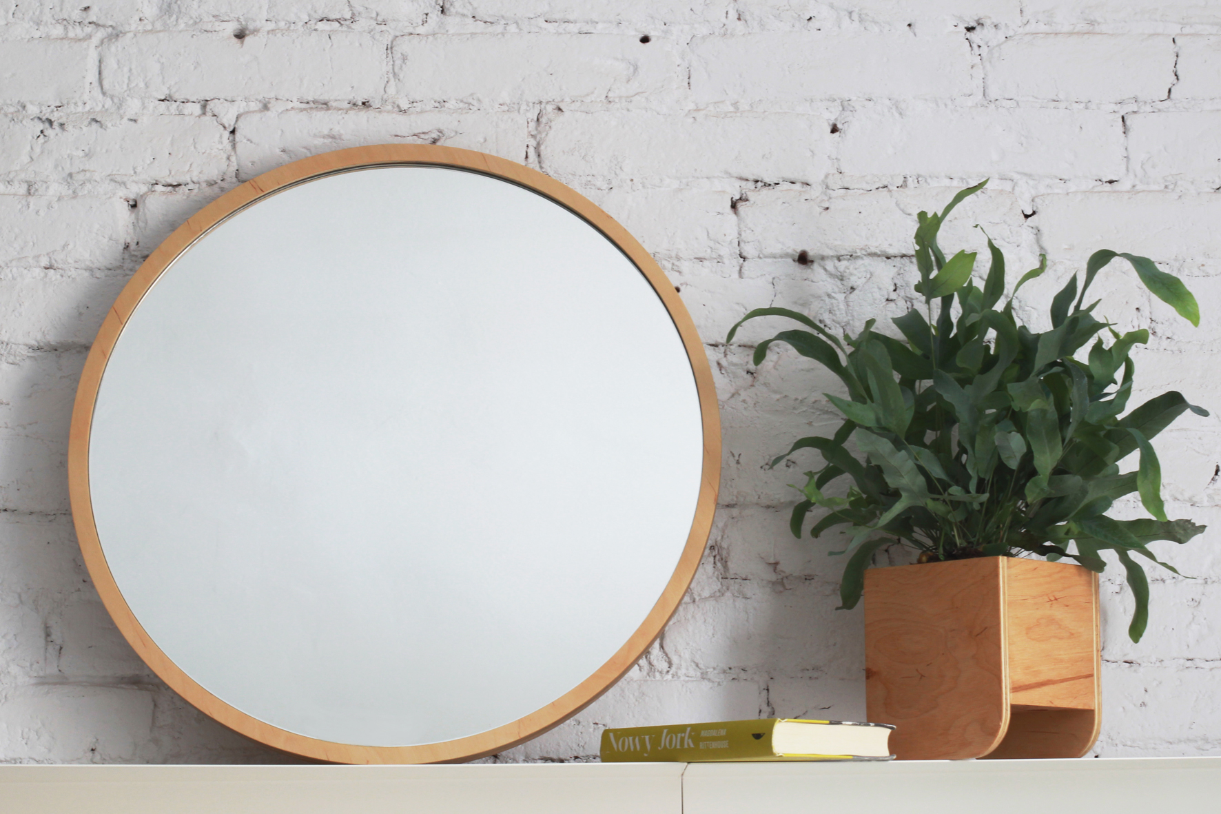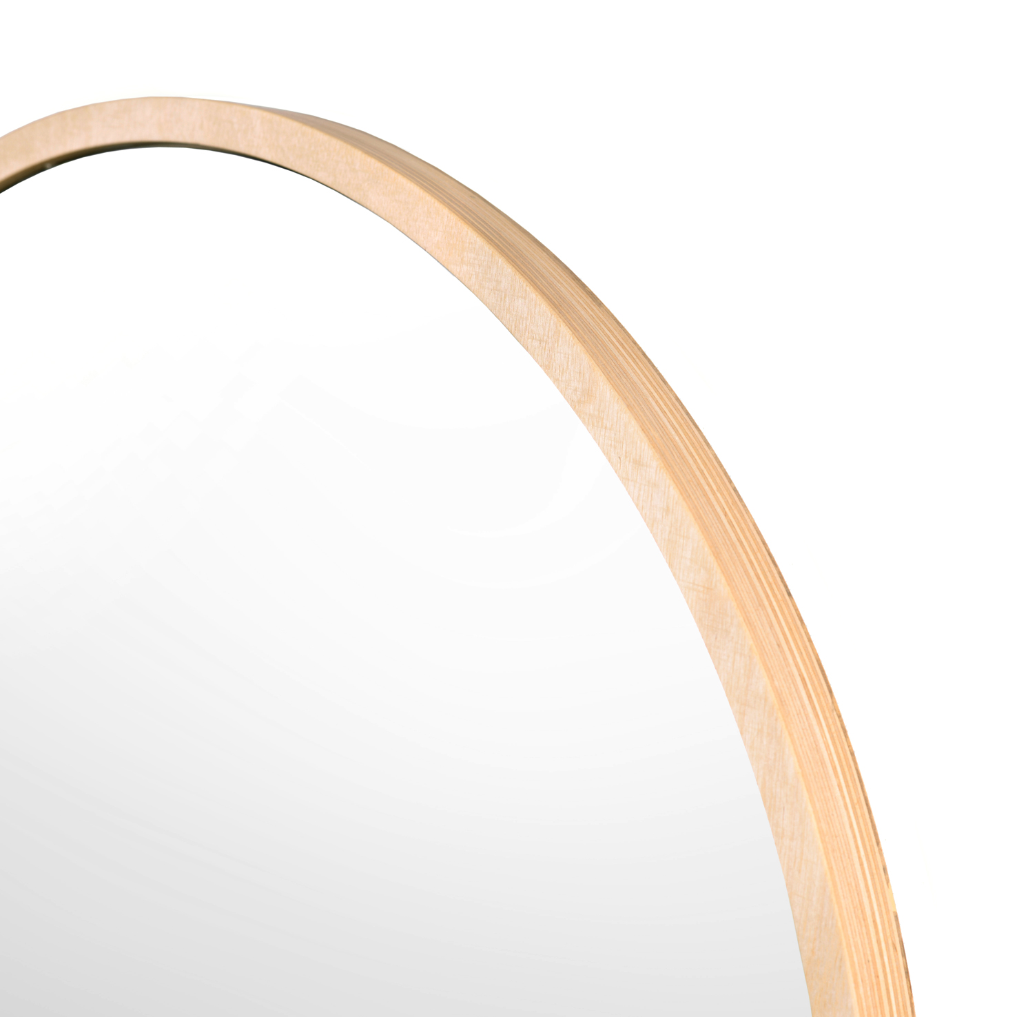 Okrągłe lustro z minimalistycznym designem to doskonały wybór do nowoczesnych wnętrz. Jego elegancka rama została wykonana ze sklejki brzozowej w kolorze naturalnym. Brak paska i widocznych mocowań sprawia, że lustro staje się niesłychanie uniwersalne. Tafla lustra jest subtelnie wpuszczona w ramę, co tworzy estetyczną i harmonijną całość.
