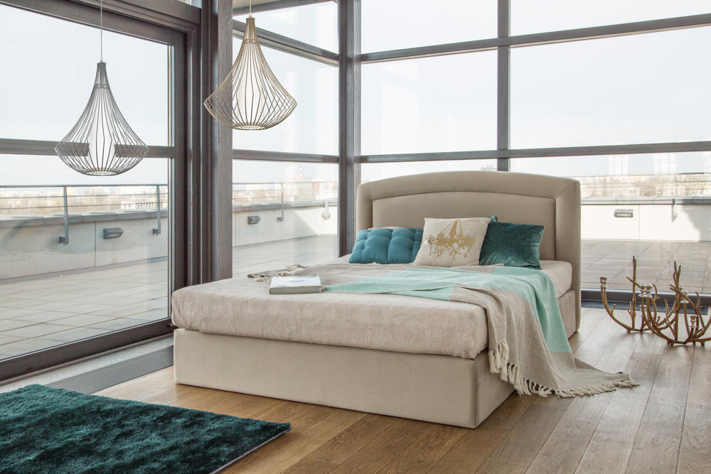 Dzięki kontynentalnej konstrukcji, w której boki są zlicowane z materacem, łóżko prezentuje się lekko i proporcjonalnie.