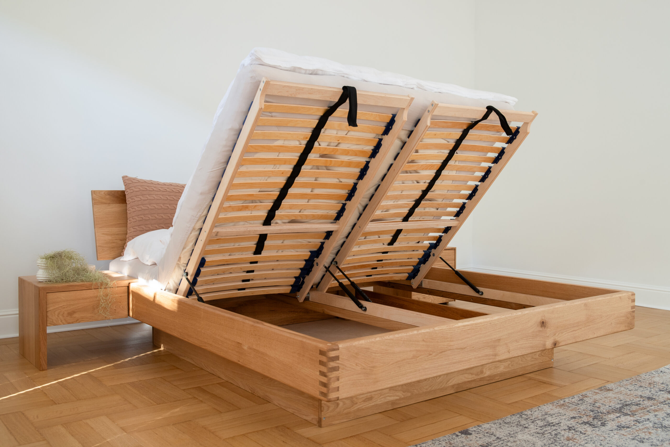 Dla zachowania wizualnej lekkości pojemnik jest zawsze mniejszy od rozmiaru łóżka.