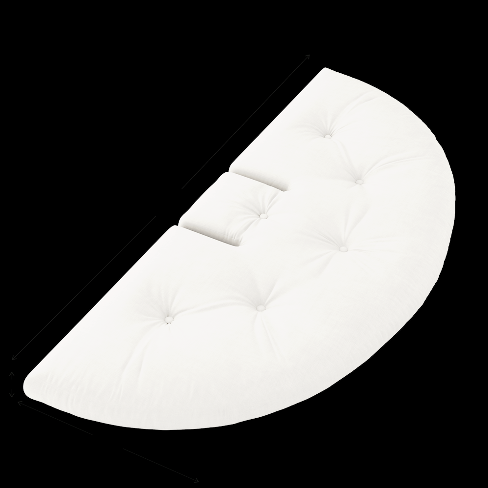 - Wypełnienie: materac 10 cm z mieszanych włókien z recyclingu (90-95% bawełna + 5-10% poliester) z rdzeniem z 2 cm pianki