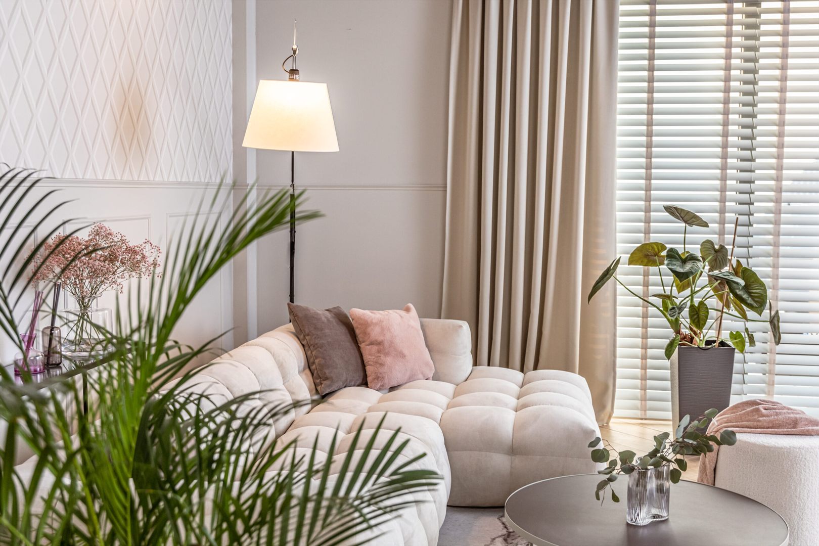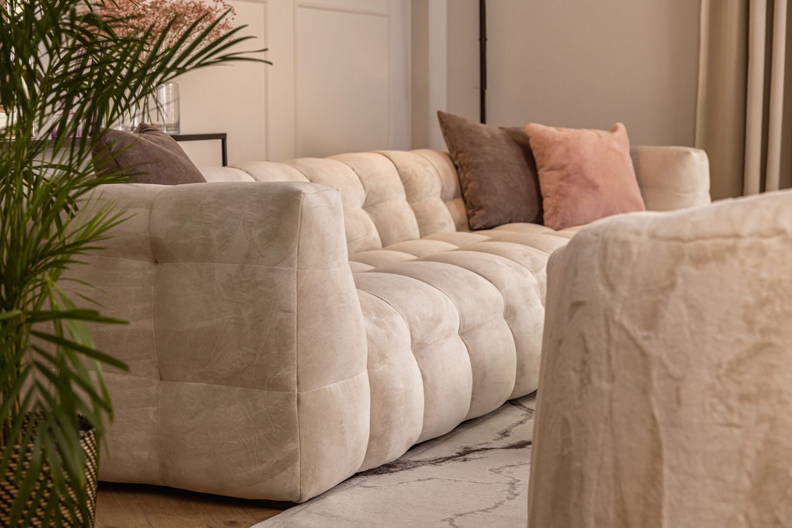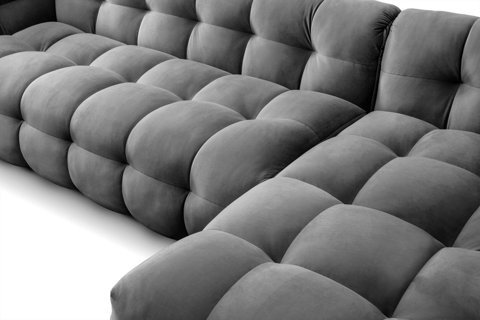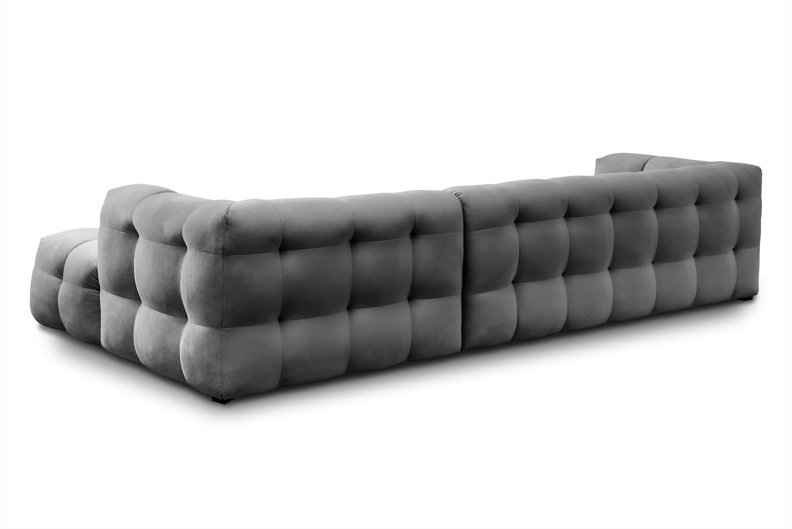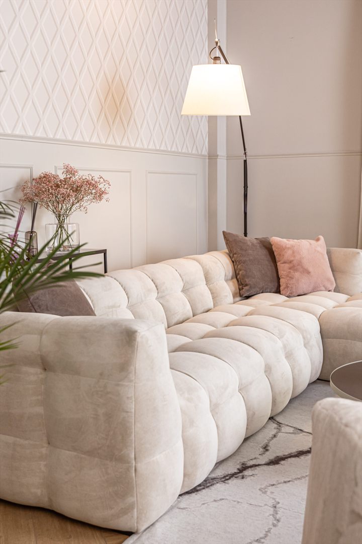 Narożnik łączy estetykę lat 80. z nowoczesnym komfortem, oferując wygodę dzięki wypełnieniu wysokoelastyczną pianką HR oraz kulkami silikonowymi, które doskonale dopasowują się do kształtu ciała. Smukłe, czarne nogi z drewna zapewniają stabilność, a brak funkcji spania gwarantuje wyjątkową miękkość i komfort. Kolekcja Michelle oferuje szeroką gamę rozwiązań – oprócz narożnika, dostępne są także sofy, sofy modułowe oraz inne modele, które pozwalają na pełne dopasowanie do różnorodnych stylów aranżacyjnych. Narożnik Michelle to elegancki i funkcjonalny mebel, który stanie się ozdobą każdego wnętrza.