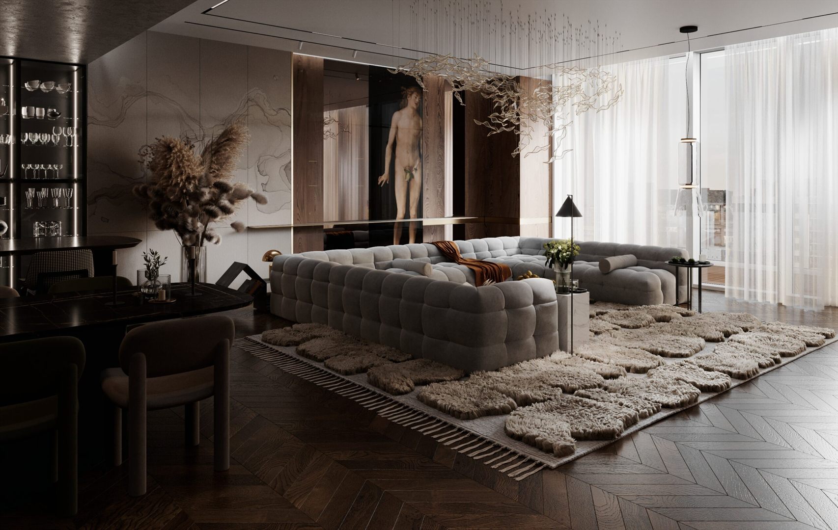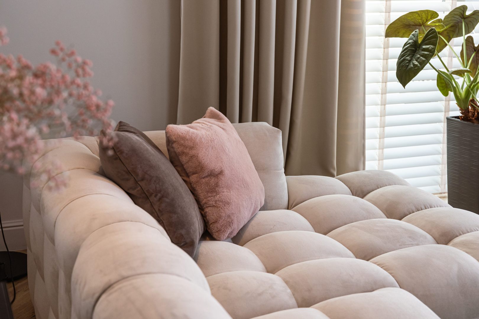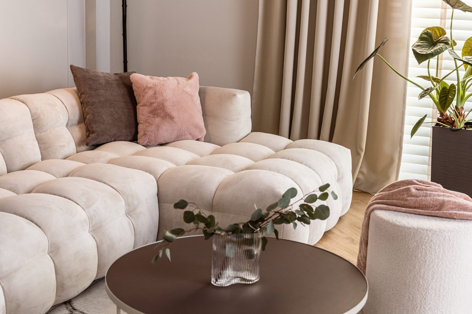 Jego oryginalna bryła, przypominająca obłok, oraz charakterystyczne przeszycia przyciągają wzrok i nadają pomieszczeniu unikalny charakter.