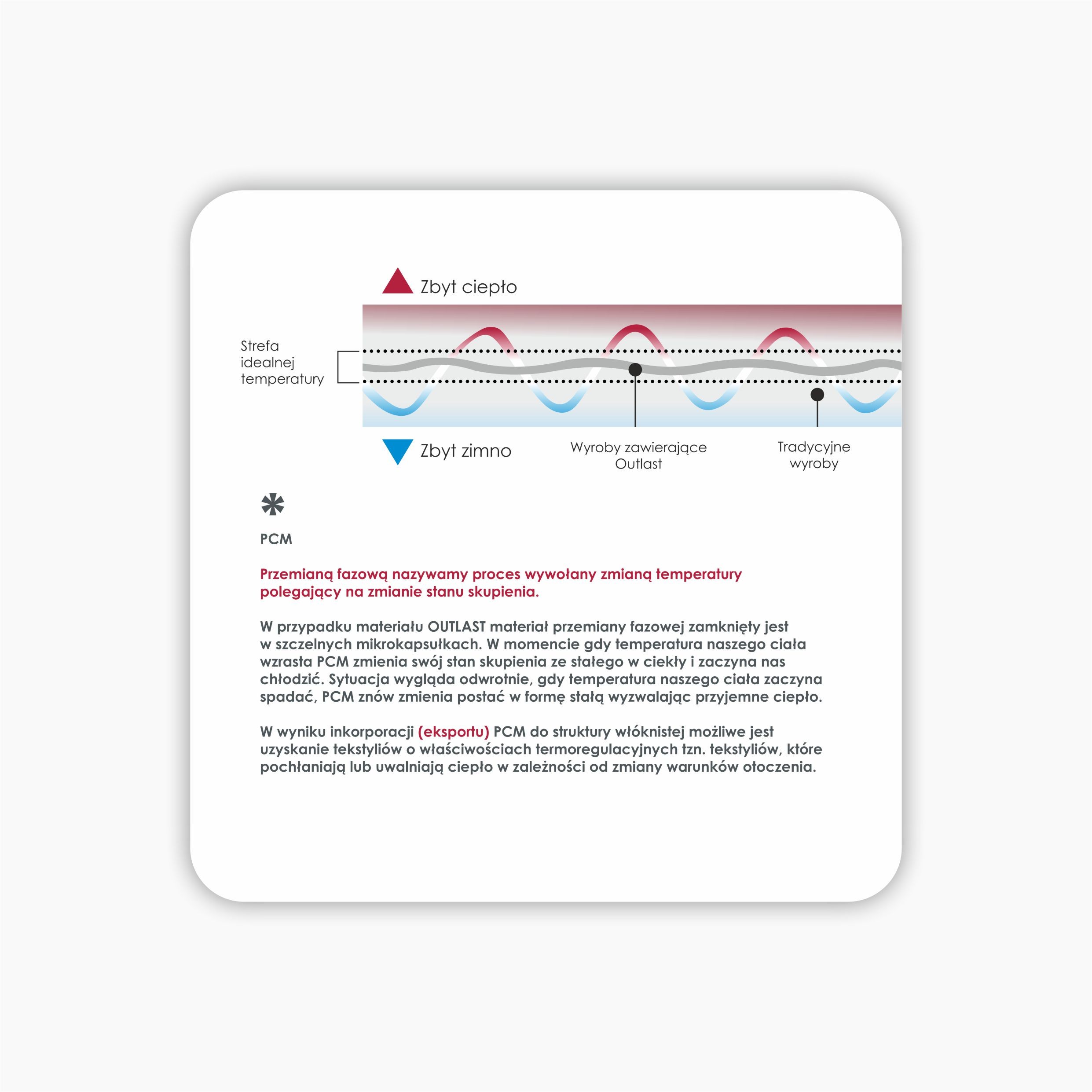 - Termoaktywne włókno OUTLAST: Reguluje temperaturę, zapobiegając przegrzewaniu i poceniu.