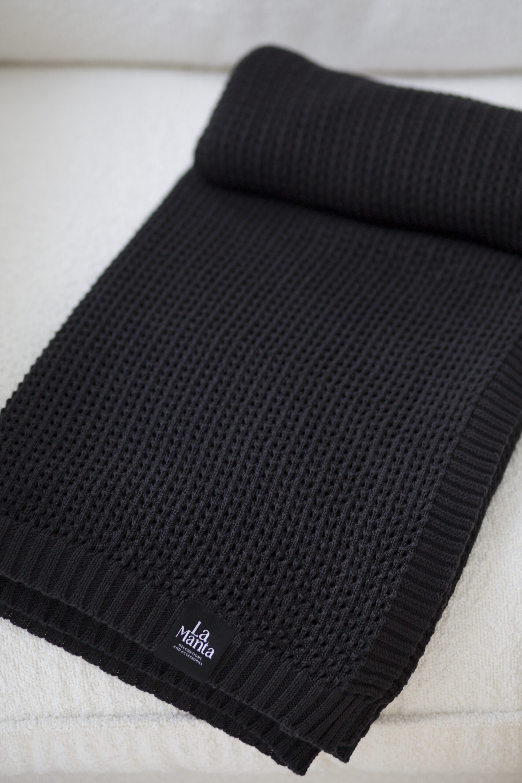 pledy, pled Boho, czarny pled, ekologiczny pled, pledy La Manta, pled do salonu, pled do sypialni, pled na zimę, pled na lato, pledy w kolorze czarnym, pled z ECOTEC, pled z naturalnej bawełny, pled na prezent, stylowe dodatki do wnętrz, pledy La Manta