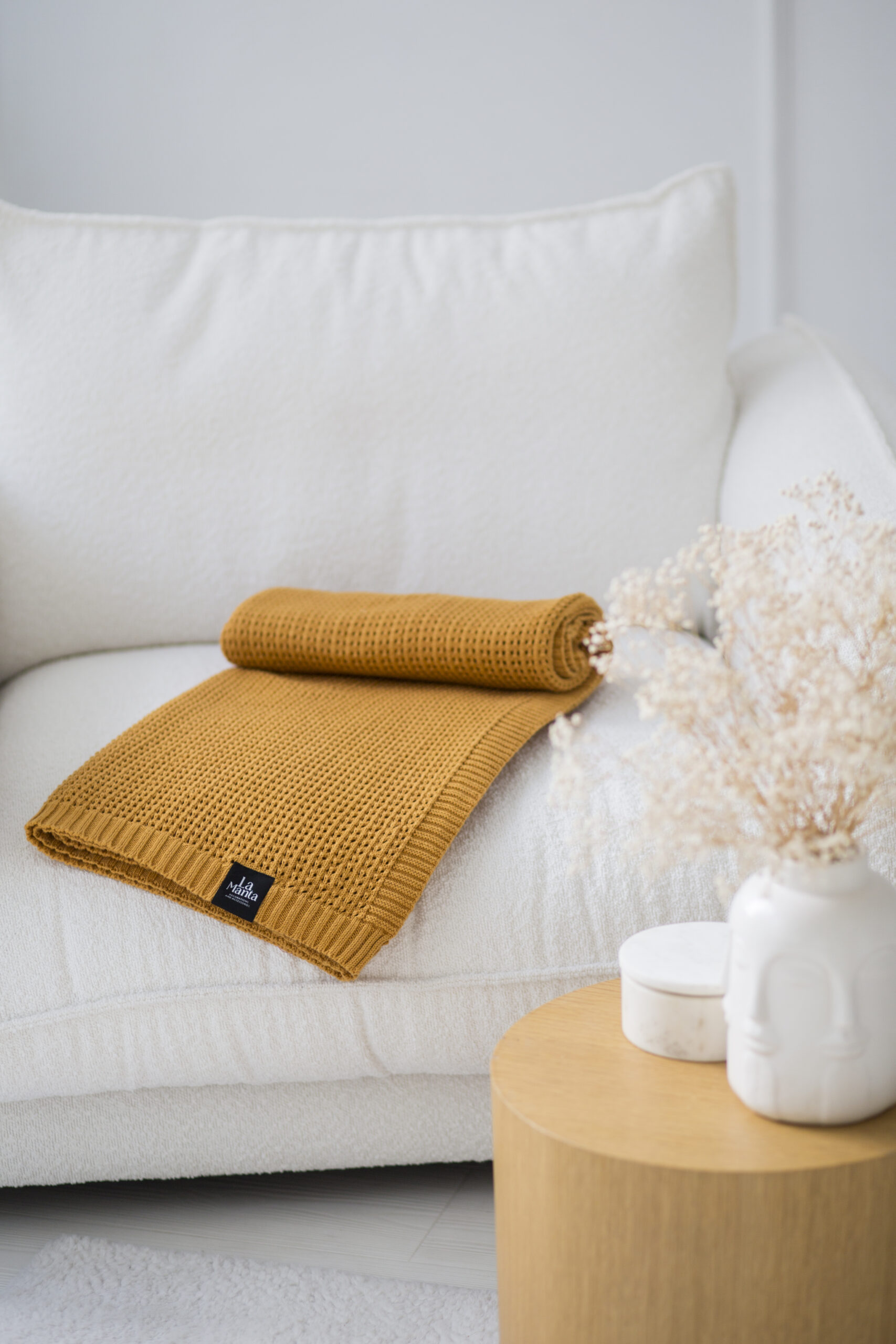 pledy, pled Boho, musztardowy pled, pled na prezent, pledy La Manta, pledy do salonu, pled z ECOTEC, pledy w ciepłych kolorach, pledy na zimę, pled na lato, stylowe dodatki do wnętrz, pledy do sypialni, pledy w kolorze musztardowym, pledy ekologiczne, pled w stylu boho