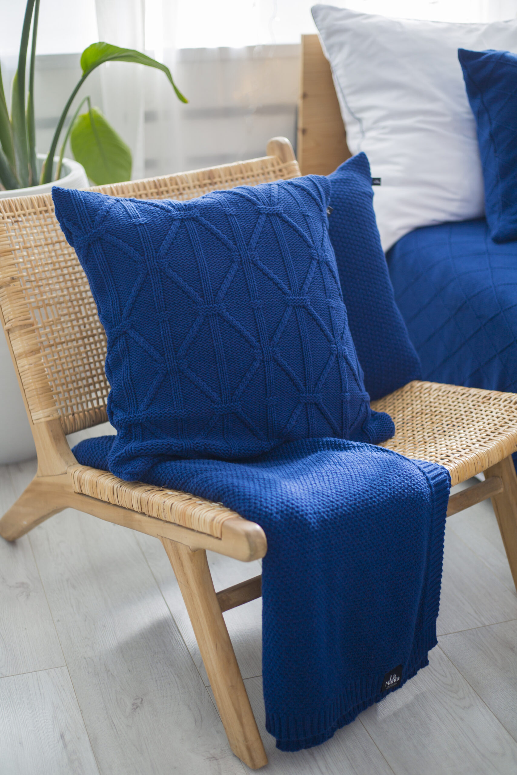 Granatowy pled pleciony to wybór dla osób, które cenią głębokie, spokojne kolory w aranżacjach wnętrz. Jego elegancki, ciemny odcień doskonale pasuje do nowoczesnych przestrzeni, wprowadzając do nich odrobinę luksusu i stylu. Wykonany z bawełny ECOTEC®, pled jest trwały, miękki i ekologiczny.