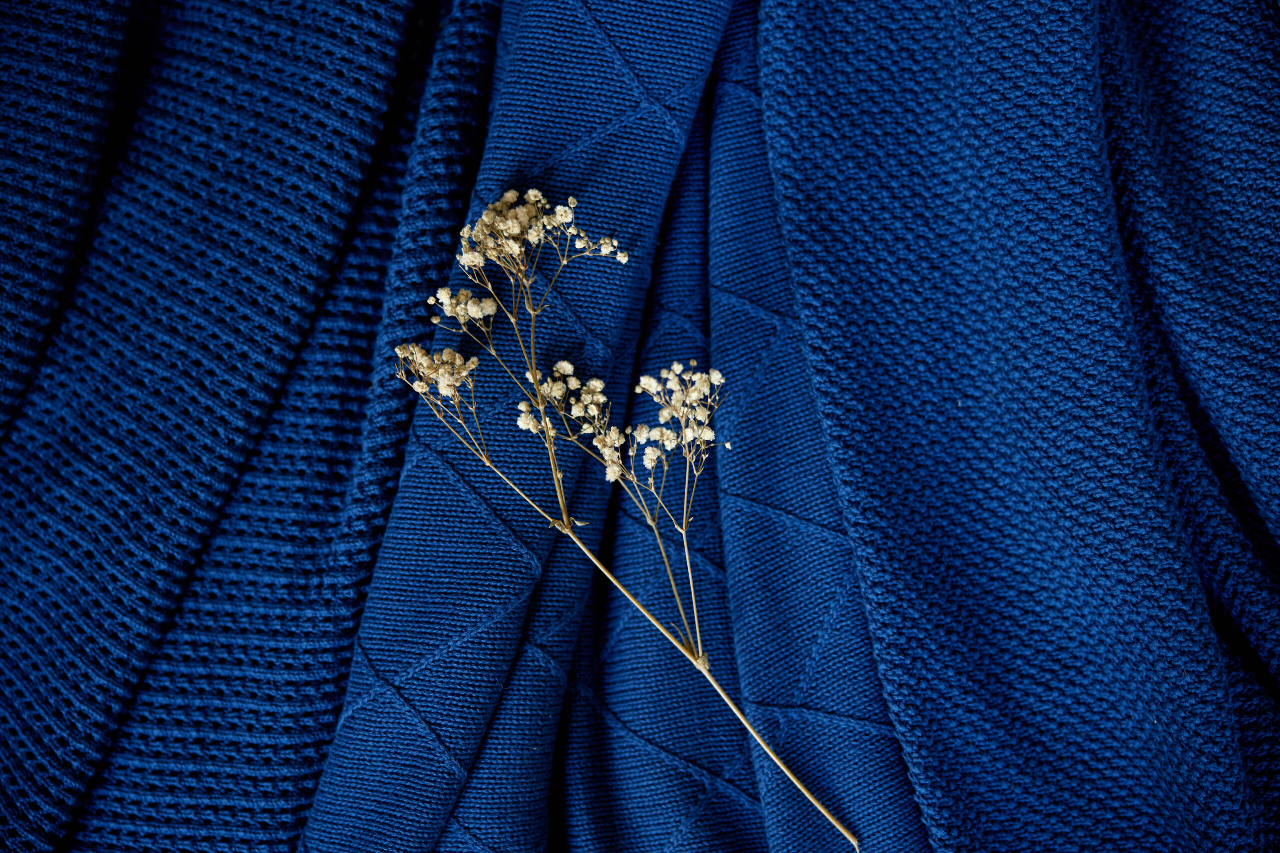 Granatowy pled świetnie komponuje się z szarościami, beżami, a także drewnianymi akcentami, wnosząc do wnętrza elegancję i spokój. Idealny wybór do sypialni, salonu czy gabinetu, tworząc przestrzeń pełną harmonii.