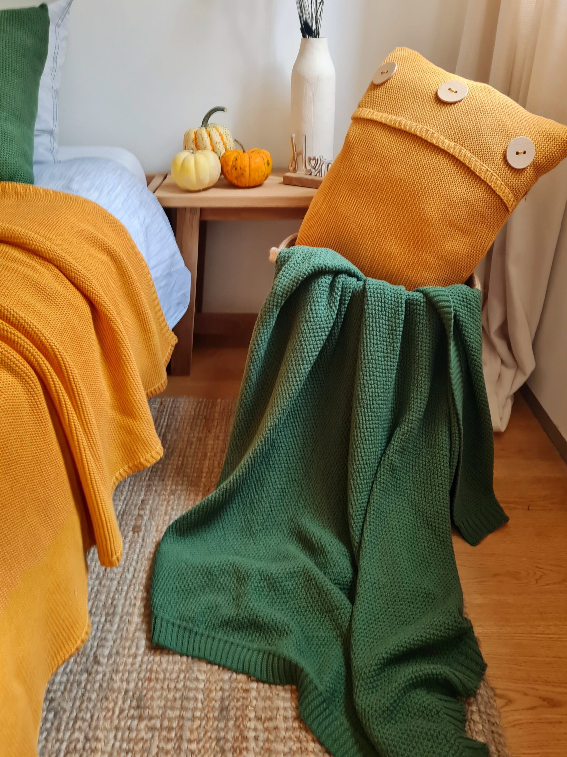 Zielony pled pleciony to idealny wybór dla miłośników natury i harmonii. Jego głęboki odcień inspirowany leśną zielenią wnosi do wnętrza spokój i świeżość. Wykonany z recyklingowanej bawełny ECOTEC®, jest przyjazny dla środowiska i wyjątkowo trwały.