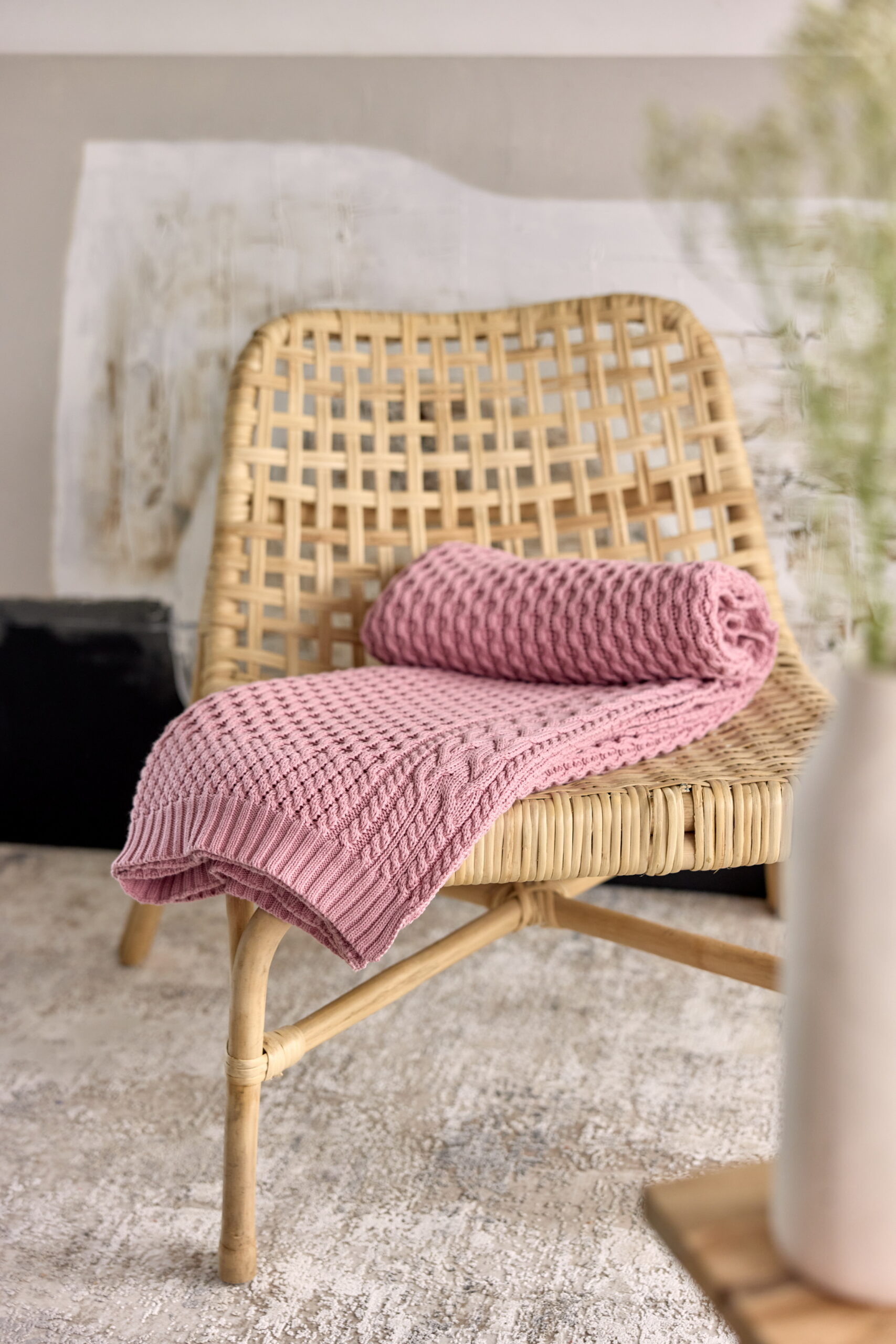Świetnie współgra z bielą, beżem i pastelami, a także tworzy odważne kontrasty z musztardą. W sypialni wprowadza atmosferę spokoju i harmonii, a w salonie staje się stylowym akcentem dekoracyjnym. Dzięki starannie dobranym materiałom pled jest trwały i będzie służył przez lata.
