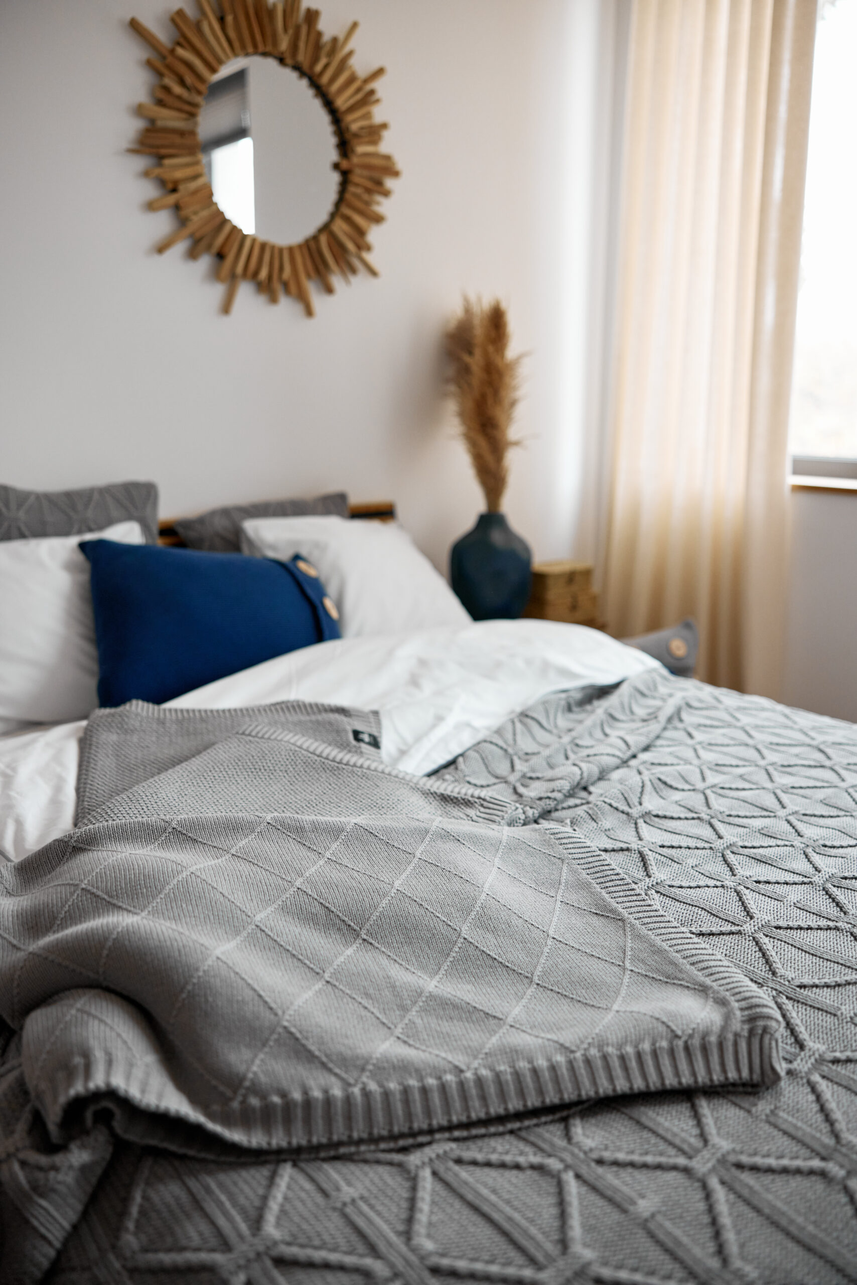 Szary pled to idealne okrycie na każdą porę roku – w chłodne dni zapewnia przyjemne ciepło, a latem dodaje wnętrzu lekkości. Doskonale komponuje się zarówno z pastelowymi barwami, jak i głębokimi odcieniami, takimi jak granat czy butelkowa zieleń. To uniwersalny dodatek, który nada Twojemu wnętrzu elegancji i przytulności, a przy tym jest przyjazny dla środowiska.