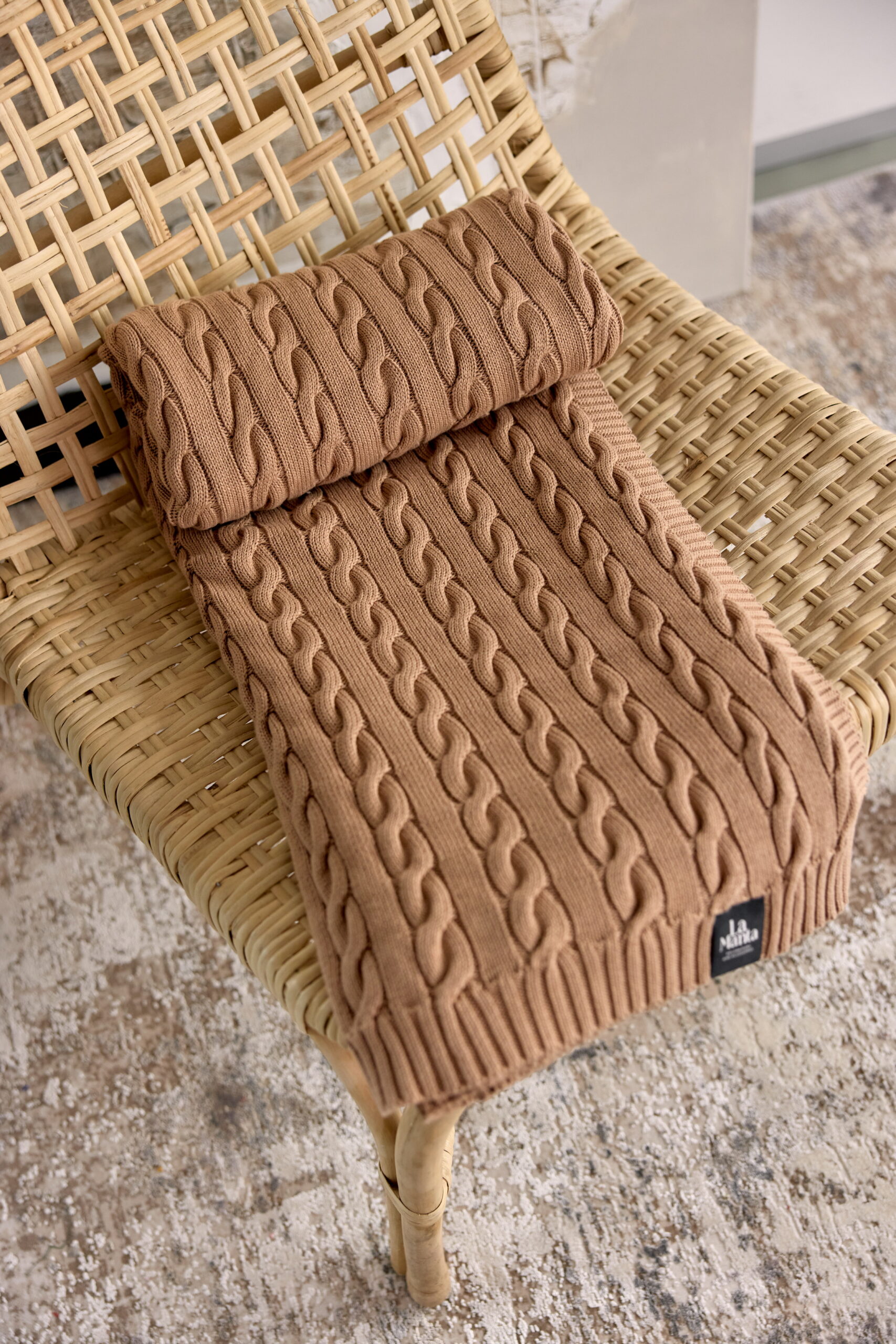 Pled LaManta w odcieniu karmelowym to urokliwy dodatek, który wprowadzi ciepły, przytulny klimat do każdego wnętrza. Dzięki zastosowaniu ekologicznej bawełny ECOTEC® oraz tradycyjnej bawełny, pled jest nie tylko przyjazny dla środowiska, ale również wyjątkowo miękki i trwały. Jego klasyczny wzór warkocza nadaje wnętrzu elegancki charakter, idealnie pasując do sypialni, salonu czy przestrzeni relaksu.