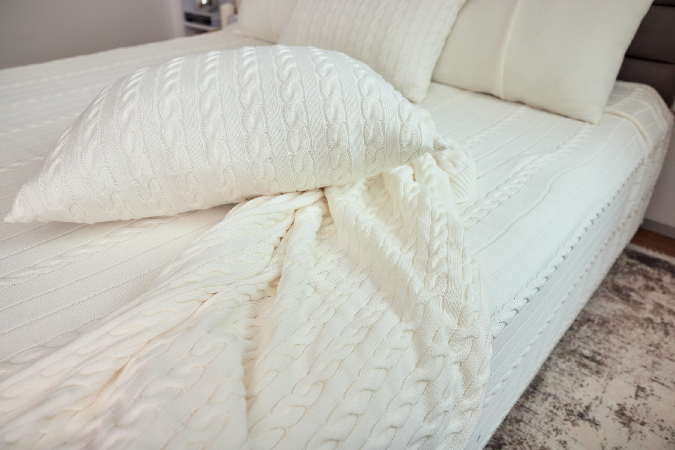 Pled warkocz La Manta w kolorze off white to elegancka i subtelna propozycja, która z powodzeniem wkomponuje się w różne przestrzenie. Dzięki misternemu splotowi i wyjątkowej puszystości, pled ten jest nie tylko piękny, ale i funkcjonalny, oferując komfort i ciepło przez cały rok. Zimą otuli, latem zaś stanie się niezastąpionym dodatkiem w chłodniejsze wieczory.