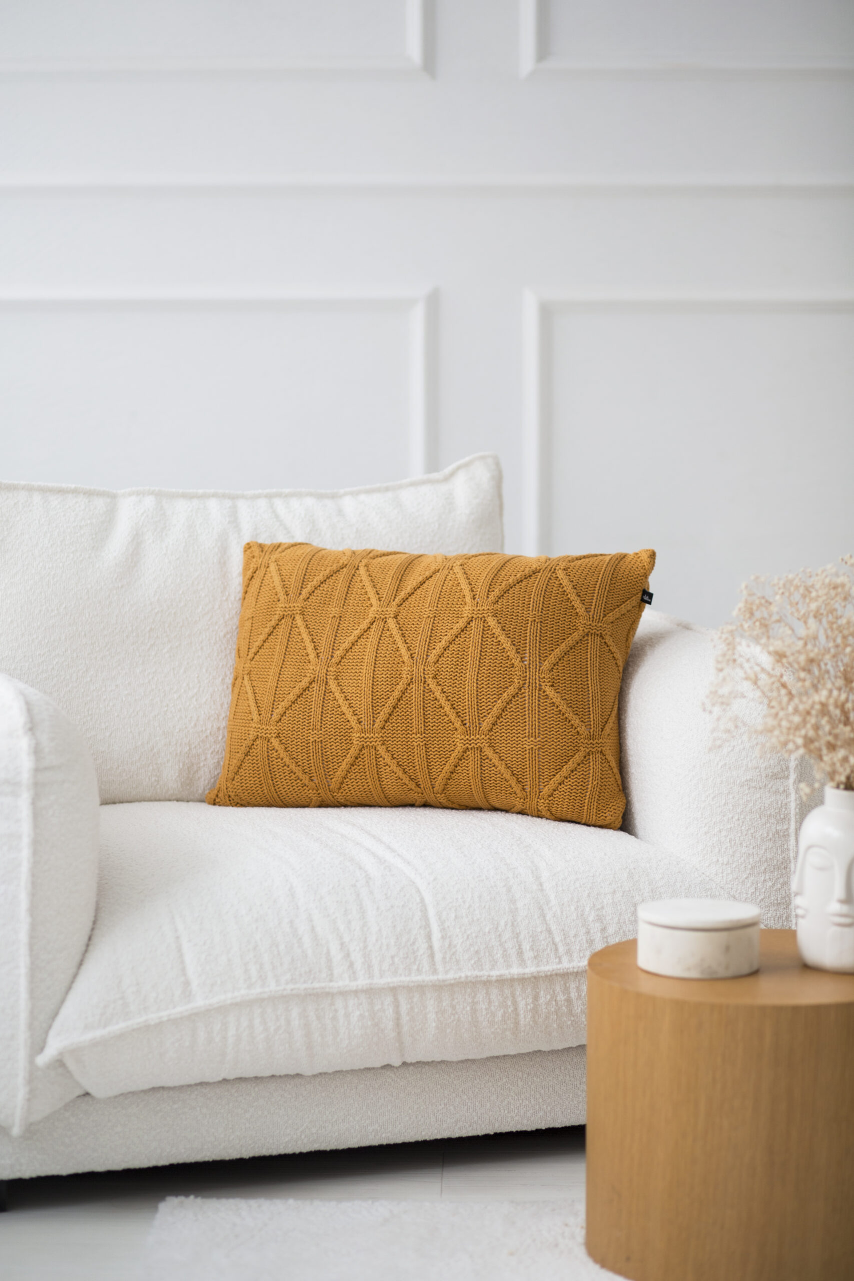 Musztardowa poszewka doskonale pasuje do wnętrz w stylu boho, skandynawskim, czy minimalistycznym, wprowadzając do przestrzeni przytulność i ciepły akcent. Dzięki swojej uniwersalnej kolorystyce, łatwo wpasuje się do różnych aranżacji.