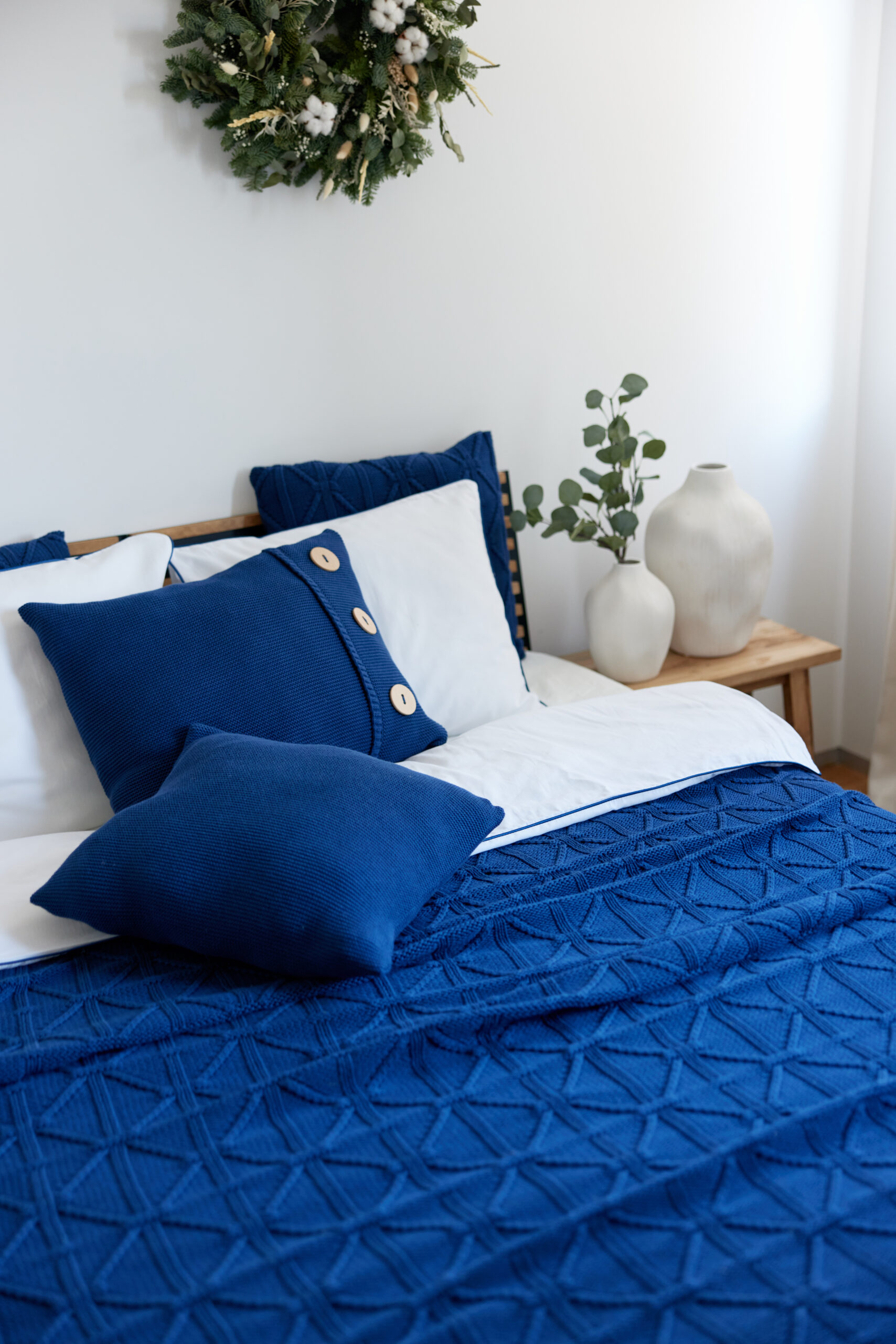 Granatowa poszewka Klasyczna z Guzikami La Manta to elegancka propozycja, która wnosi do wnętrza głębię i wyrafinowanie. Jej ciemny odcień granatu w połączeniu z drewnianymi guzikami tworzy spójną, ponadczasową dekorację, która świetnie komponuje się z jasnymi elementami wnętrza. Granatowa poszewka doda klasy każdemu pomieszczeniu, wprowadzając elegancki akcent.