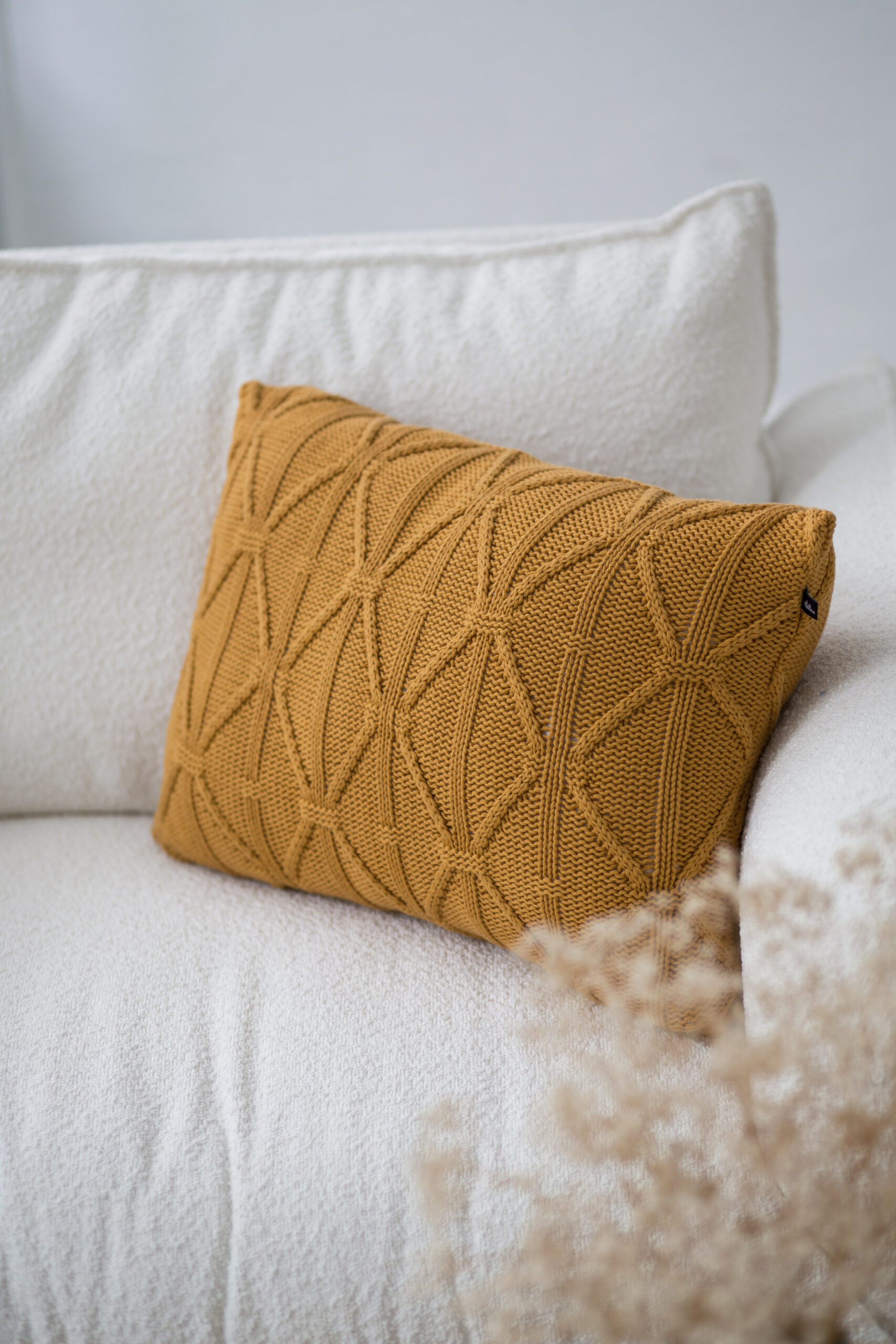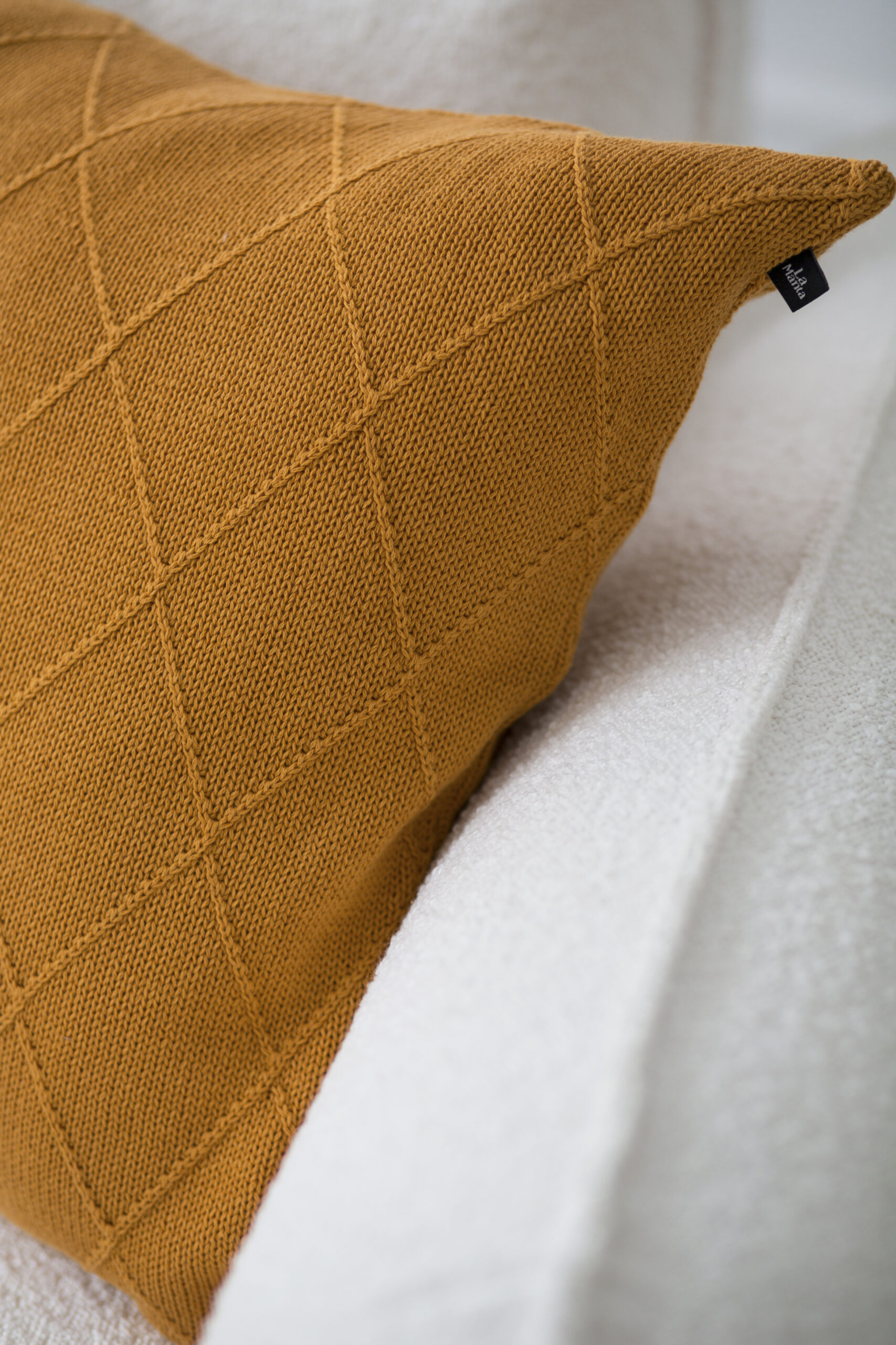 Poszewka La Manta w kolorze musztardowym z rombowym splotem jest pełna energii i ciepła. Musztardowy odcień ożywia wnętrza, dodając im blasku. To idealny wybór do wnętrz, które potrzebują odważnego akcentu, pasującego zarówno do nowoczesnych, jak i stylowych aranżacji.