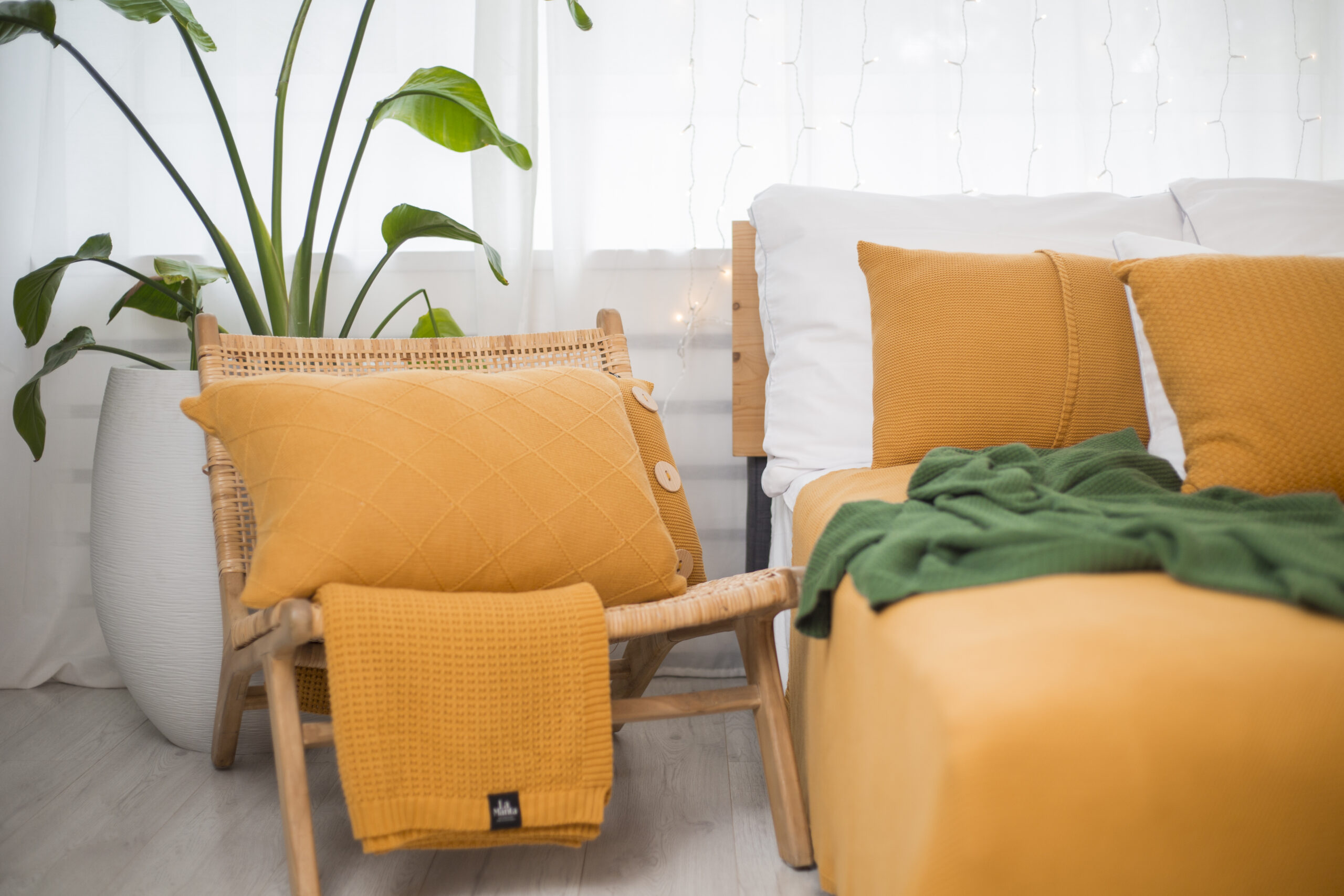 Musztardowa poszewka La Manta z rombami to odważny wybór, który wprowadza do wnętrza energię i ciepło. Musztardowy kolor nadaje przestrzeni blasku i ożywia ją, tworząc przyjazną atmosferę. Jest to idealna opcja do nowoczesnych aranżacji, które potrzebują odważnych akcentów, ale również doskonale komponuje się w klasycznych wnętrzach.