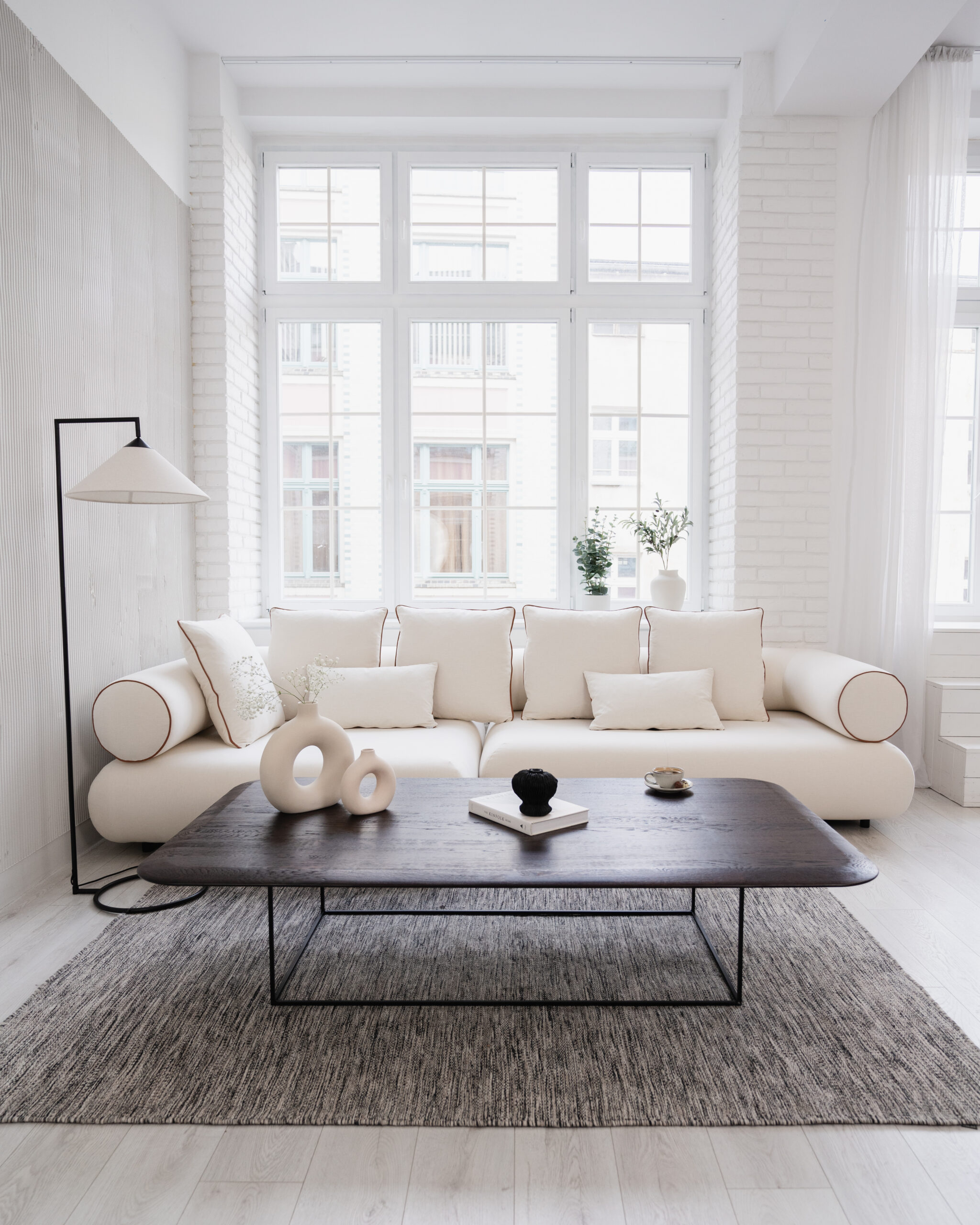Jej organiczne, zaokrąglone kształty nadają wnętrzu subtelną harmonię, a niska konstrukcja zapewnia nowoczesny, stabilny wygląd, idealnie pasujący do przestronnych i stylowych aranżacji.