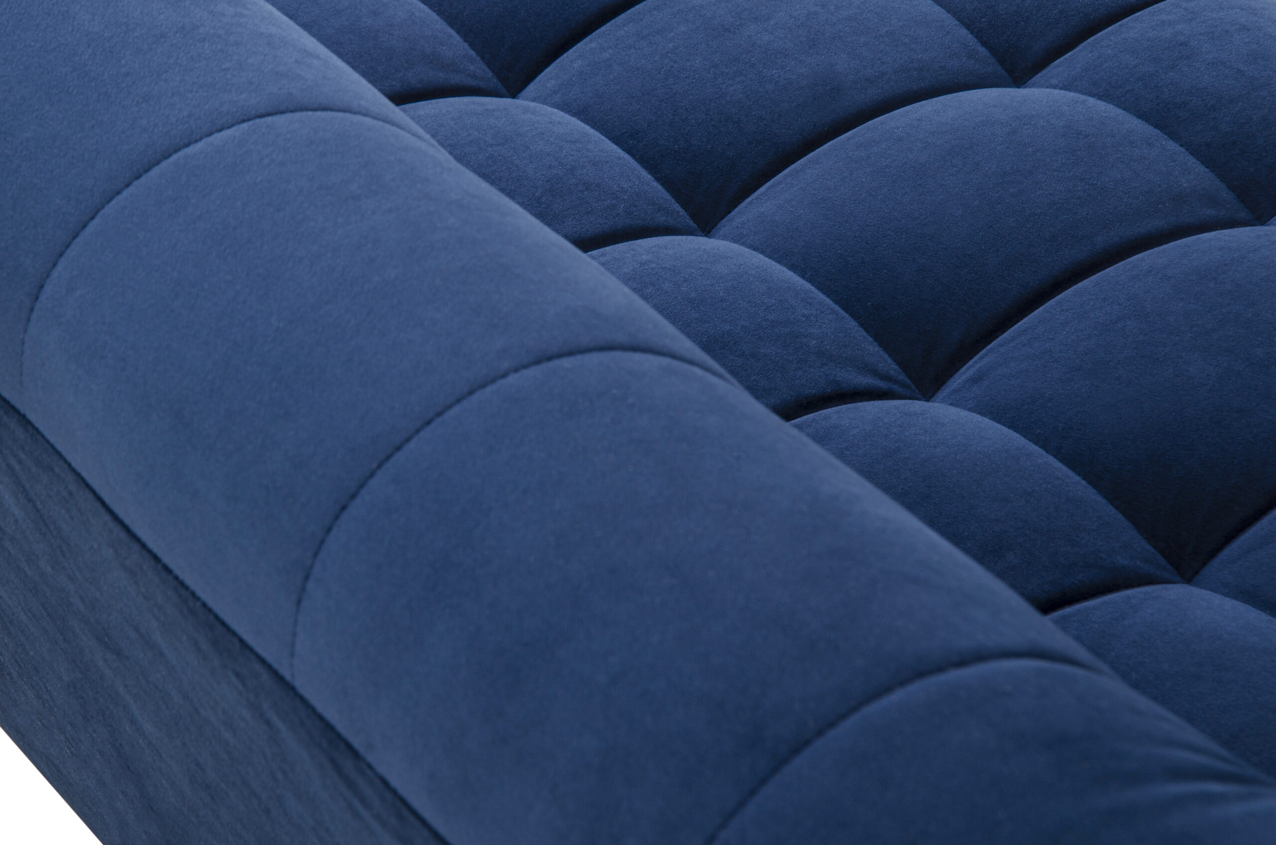 Delikatne pikowania na wewnętrznej części mebla oraz smukłe, wysokie nogi nadają jej dostojności, czyniąc ją piękną ozdobą każdego pomieszczenia.
