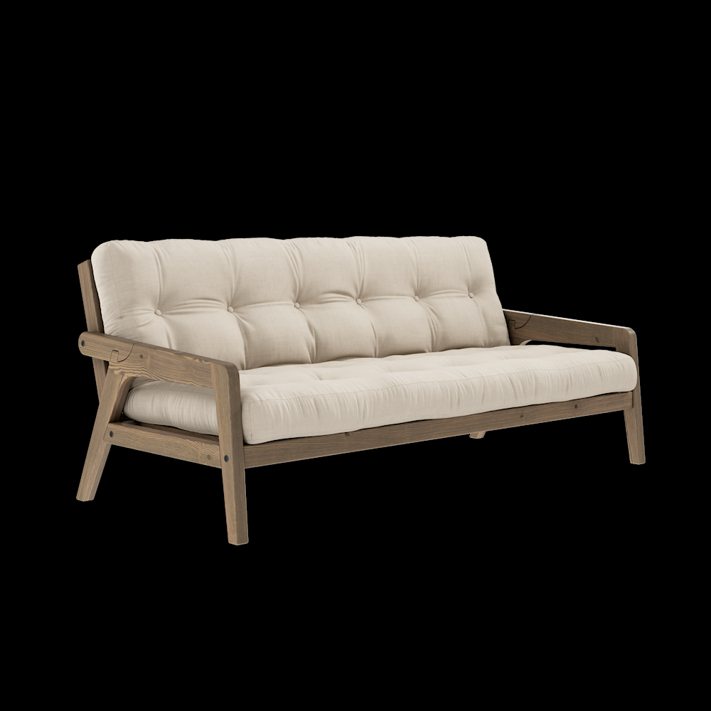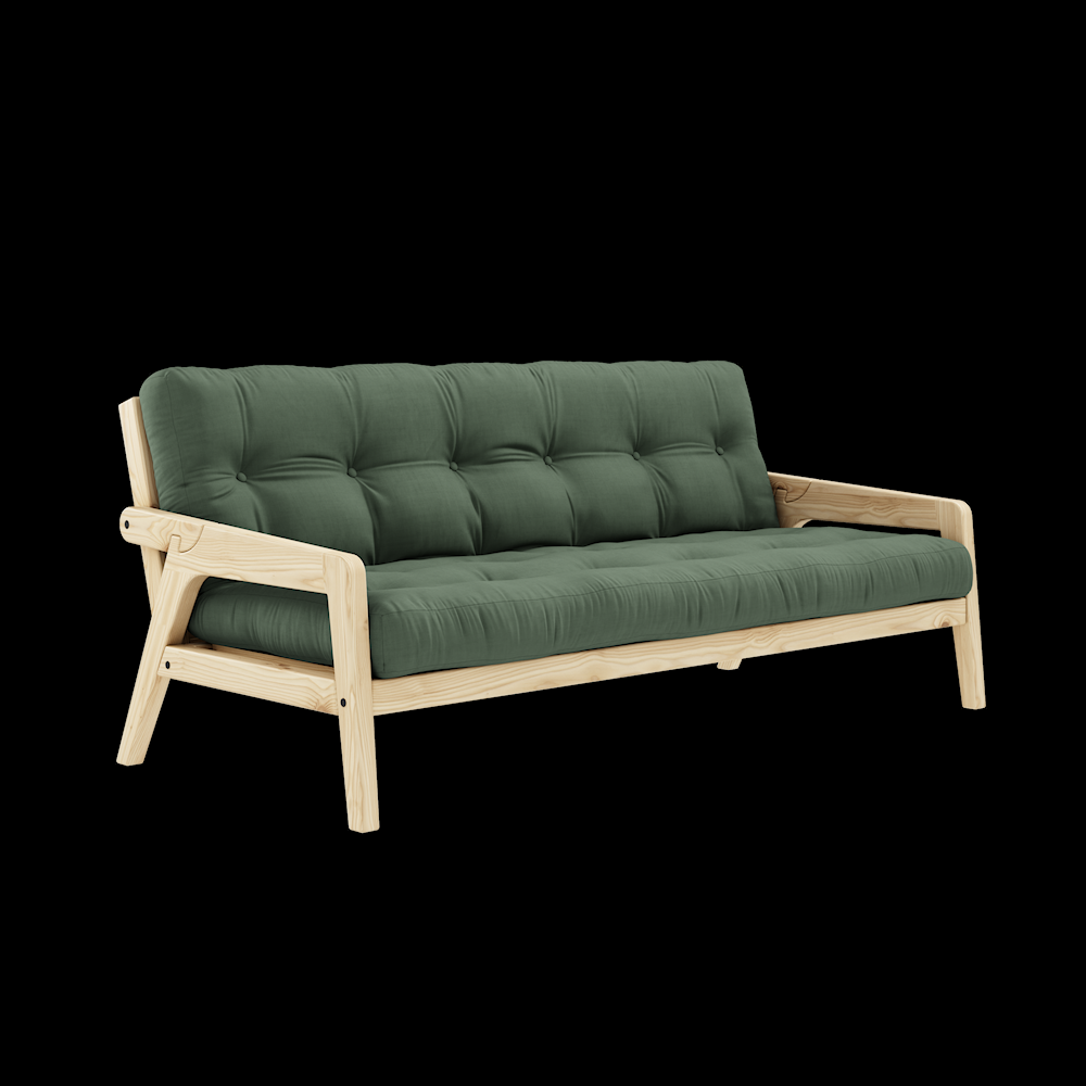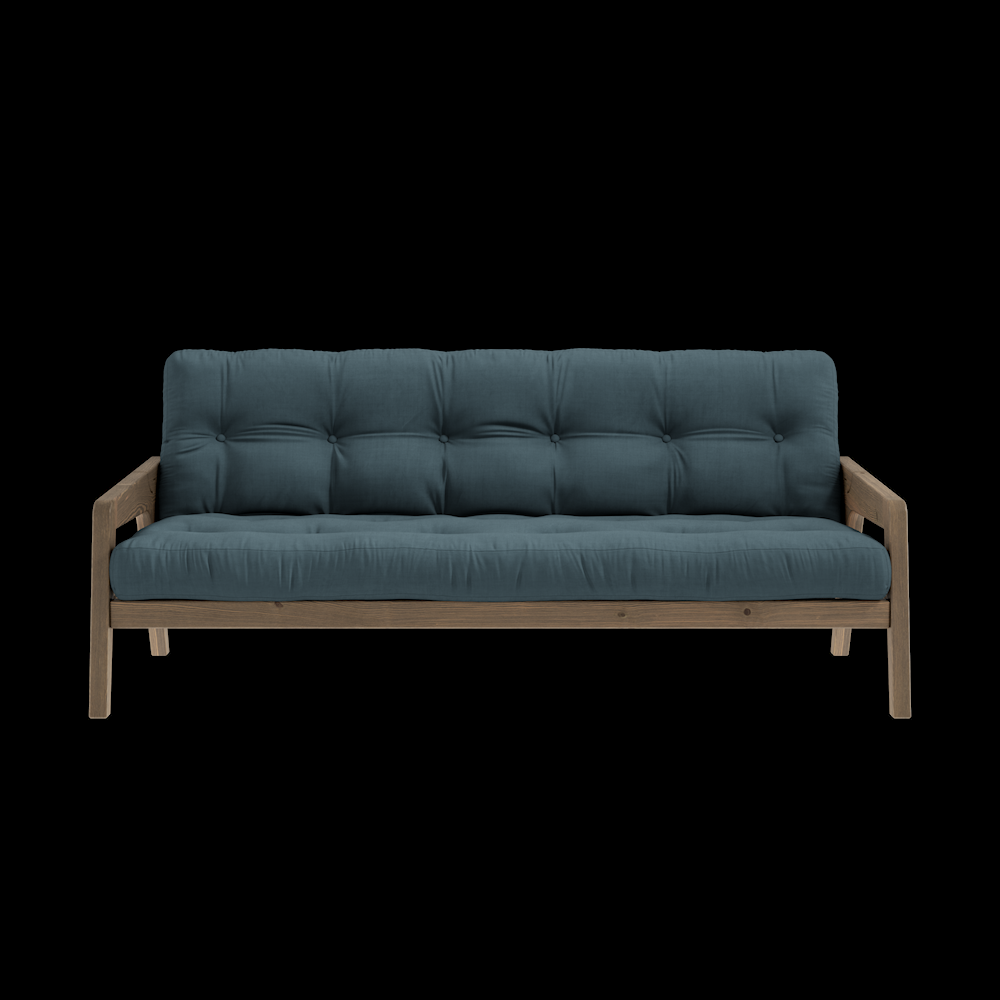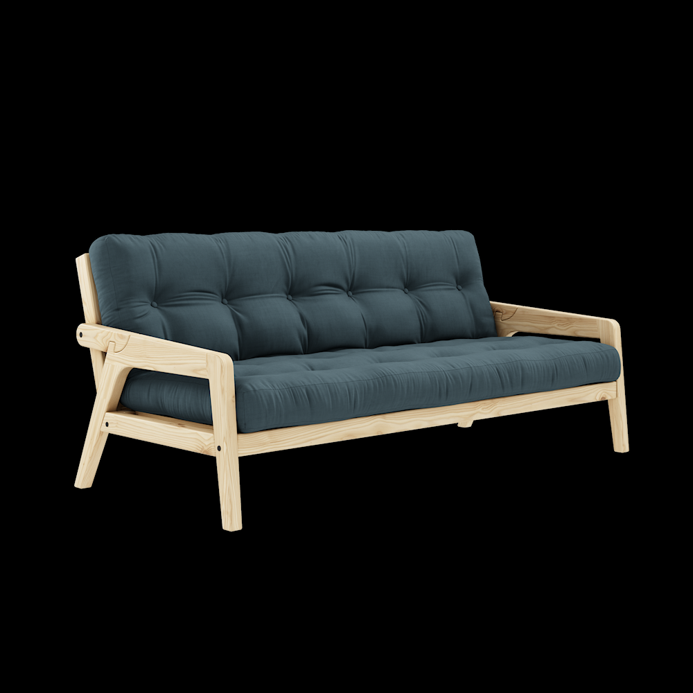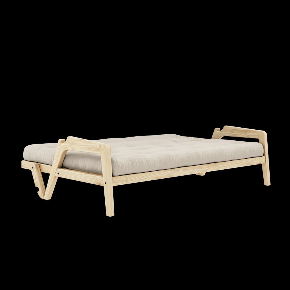Oparcia sofy są zaprojektowane w taki sposób, aby łatwo można je było złożyć, w taki sposób by pełniły funkcję tylnych nóg łóżka. Grab jest wyposażona w komfortowy materac futon. Projekt autorstwa Says Who dla Karup Design.