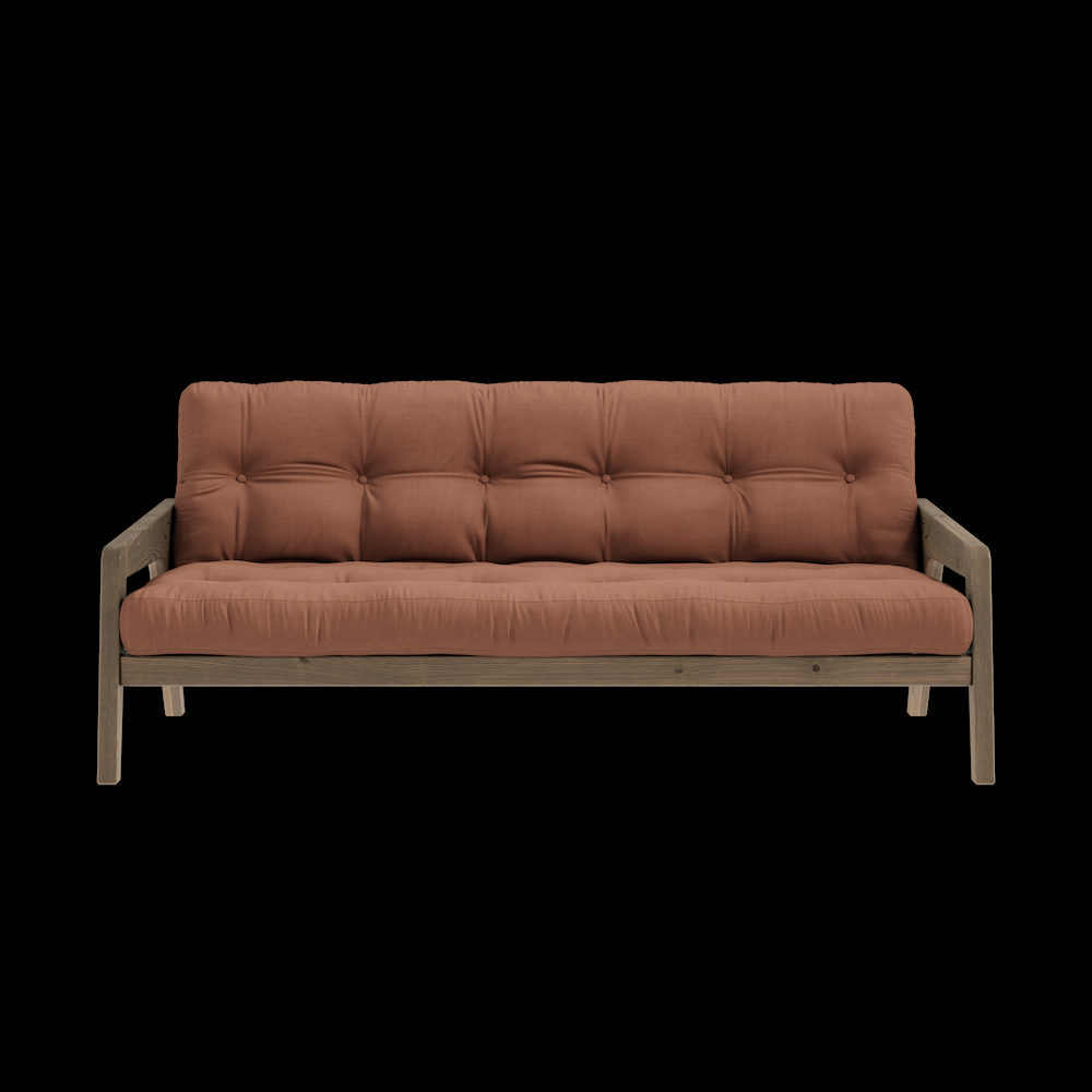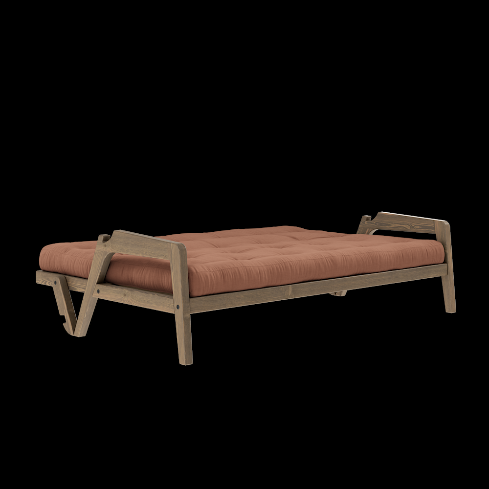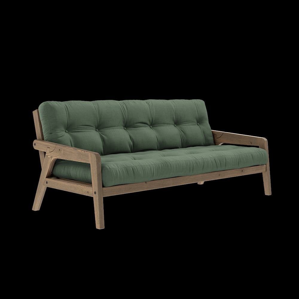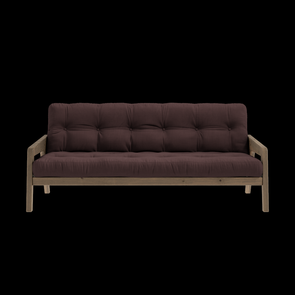 Oparcia sofy są zaprojektowane w taki sposób, aby łatwo można je było złożyć, w taki sposób by pełniły funkcję tylnych nóg łóżka. Grab jest wyposażona w komfortowy materac futon. Projekt autorstwa Says Who dla Karup Design.