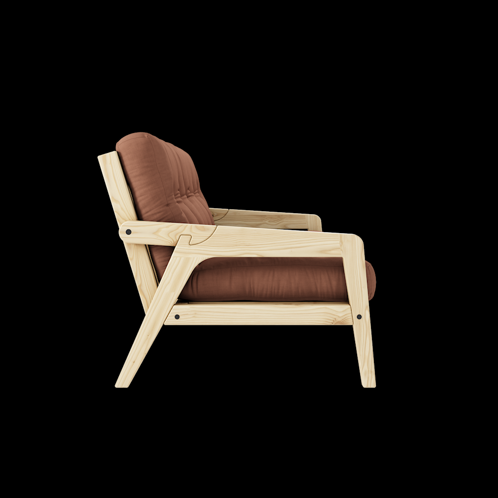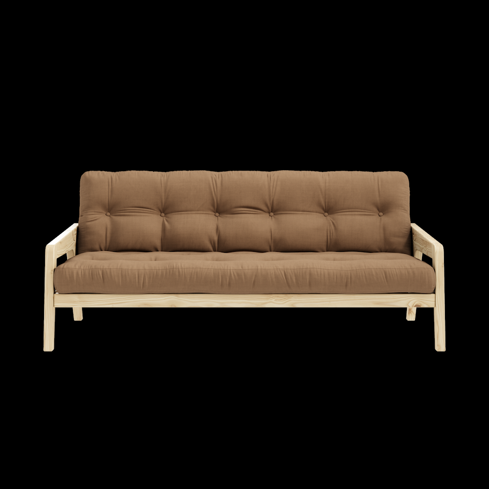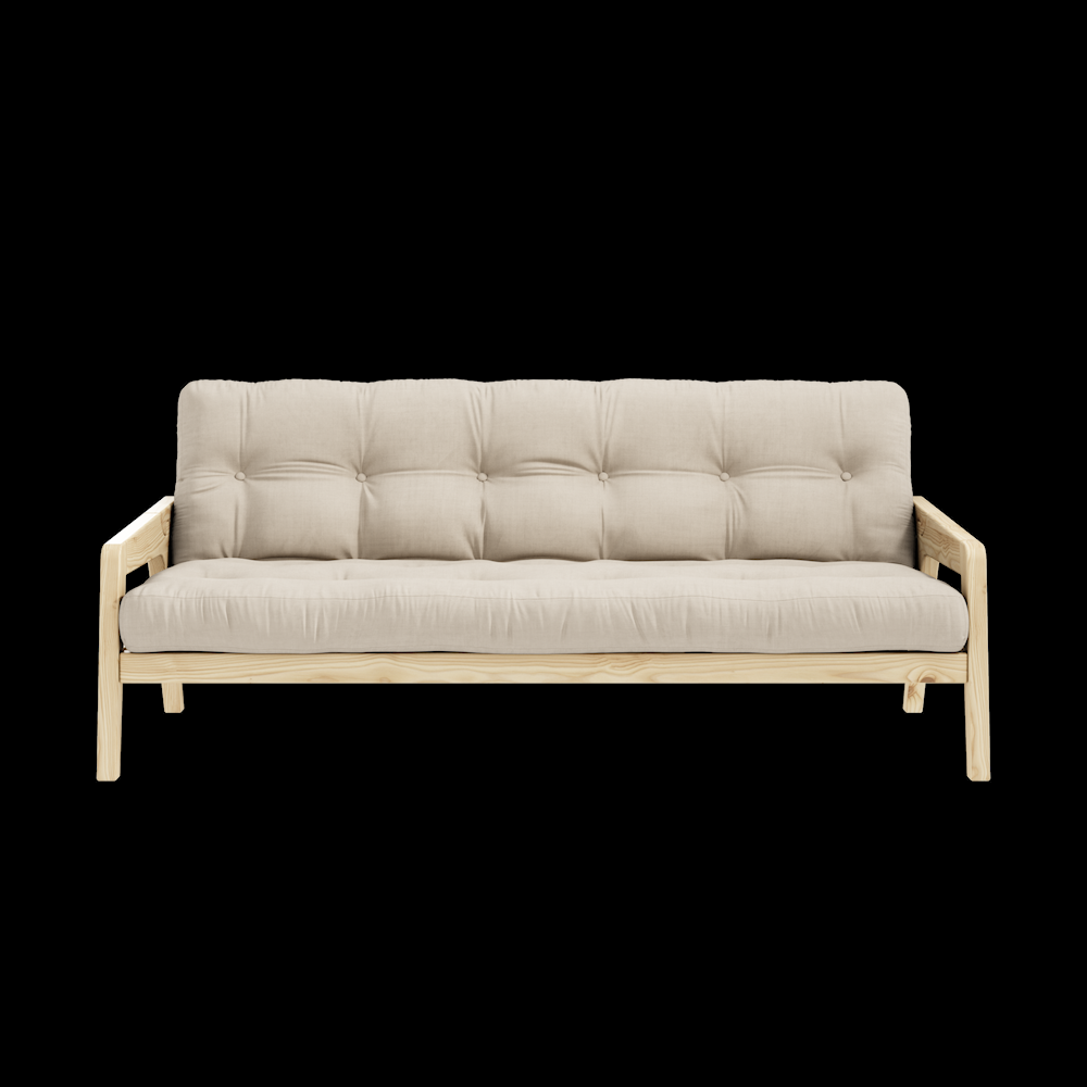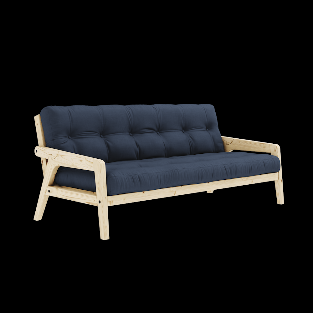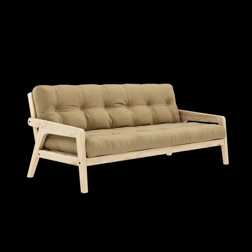 Oparcia sofy są zaprojektowane w taki sposób, aby łatwo można je było złożyć, w taki sposób by pełniły funkcję tylnych nóg łóżka. Grab jest wyposażona w komfortowy materac futon. Projekt autorstwa Says Who dla Karup Design.