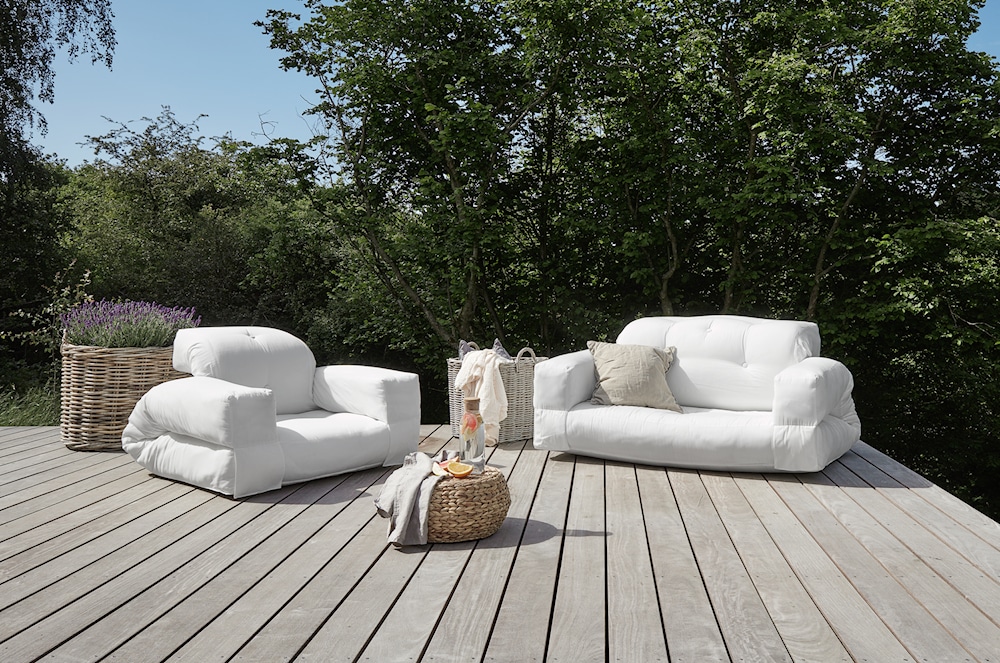 Hippo to wygodna sofa futon, którą można łatwo przekształcić w materac. Aby to zrobić, wystarczy opuścić oparcie sofy i unieść podłokietniki, a Hippo rozłoży się na płasko, tworząc gruby i miękki materac, idealny dla nocujących gości. Projekt autorstwa Andersa Backe, Anne-Sofie Voss, Idy Sofie Lange, Larsa Wigha i Troelsa Raska Pedersena dla Karup Design.